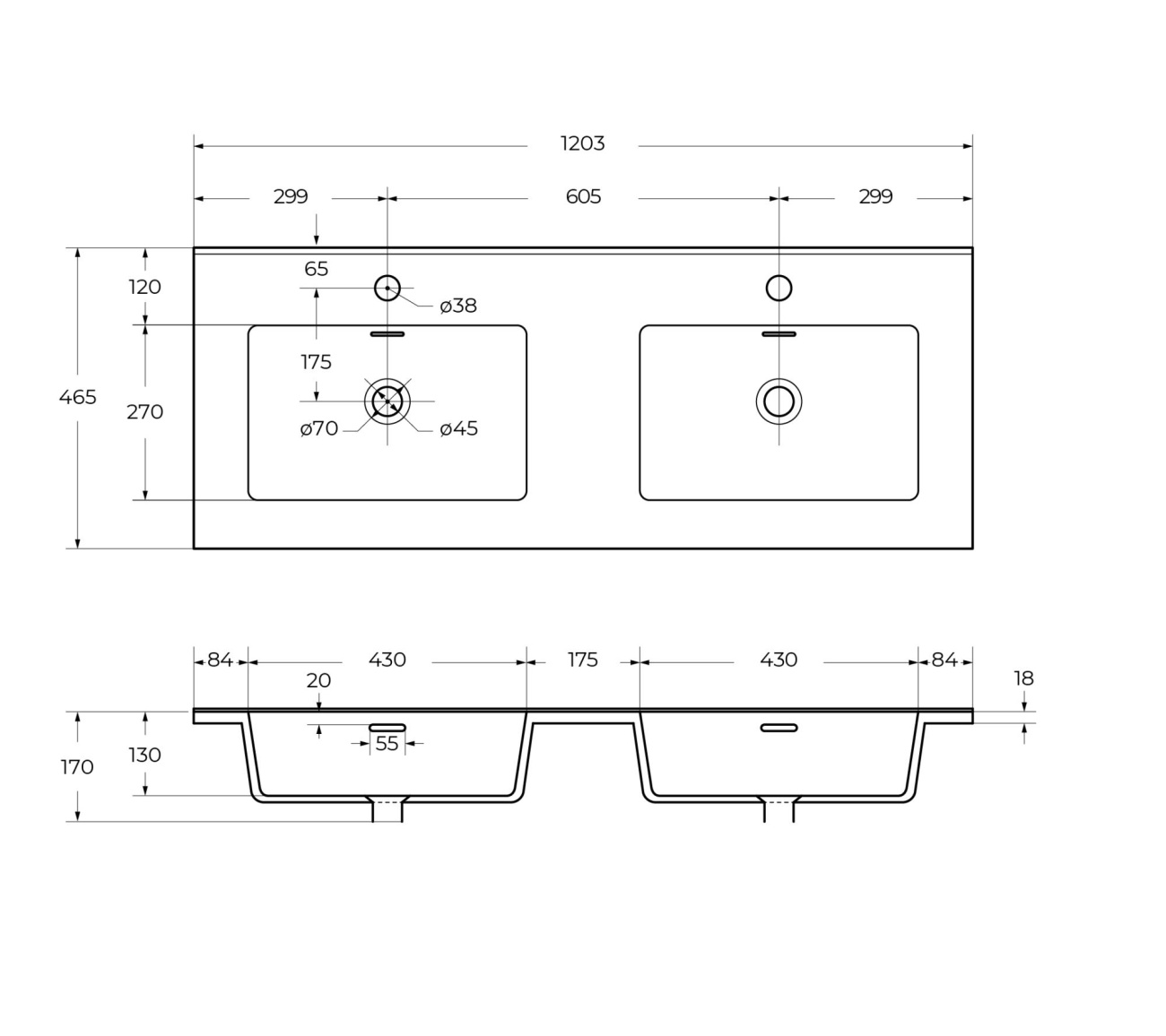 Характеристики тумба с раковиной Cezares (55940+50135)
