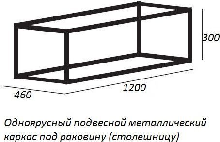- Одноярусный подвесной стальной сварной каркас под раковину, CADRO-120/46/30-1C-SO-MET-ST, цвет - Nero