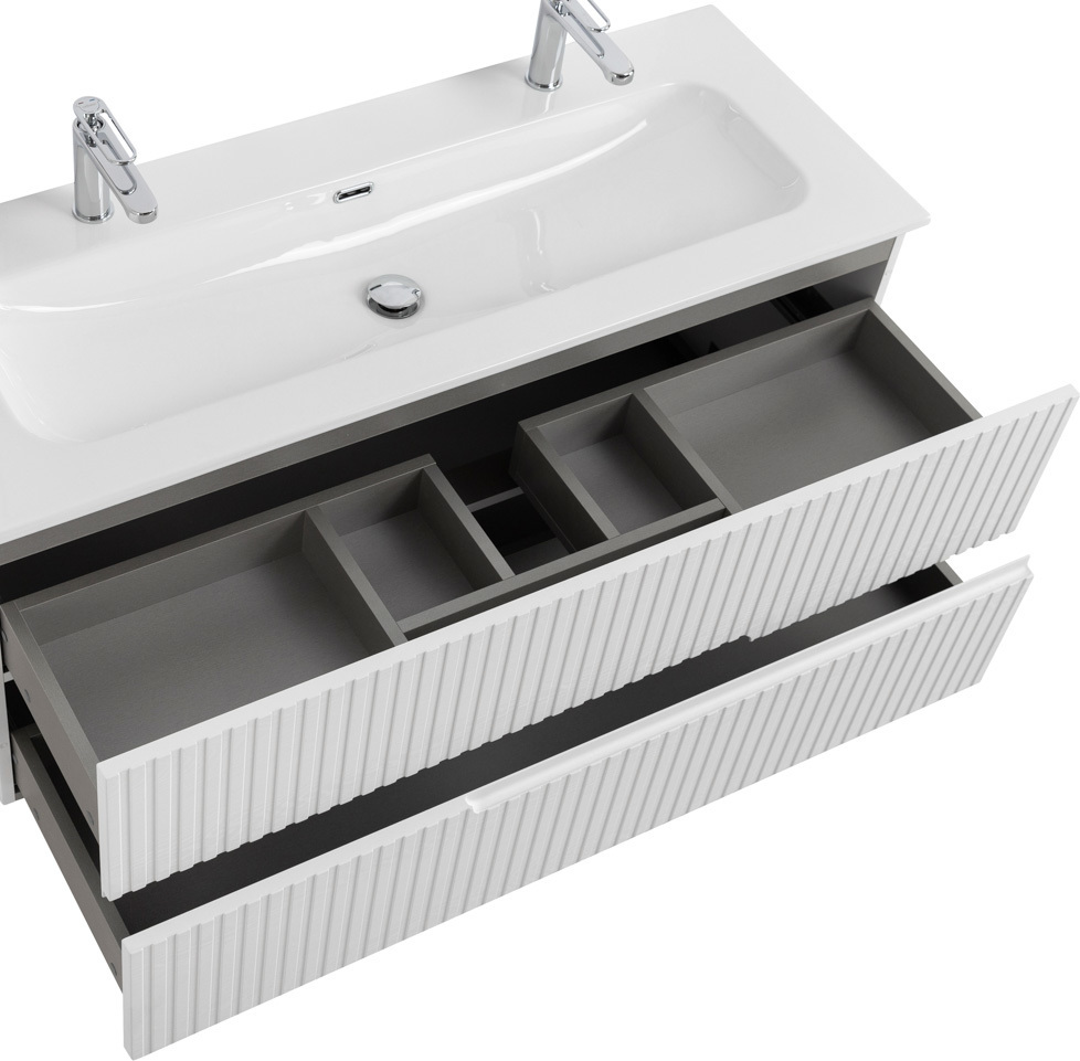 Тумба подвесная с раковиной Cezares DUET-N-1200-2C-SO-FBS-P 120 см (раковина CZR-8073-120-1-2) ясень белый софт