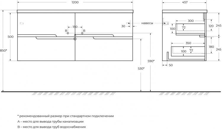Характеристики тумба с раковиной Cezares (DUET-N-1200-4C-SO-2-PS-P+CZR-8073-120-2)