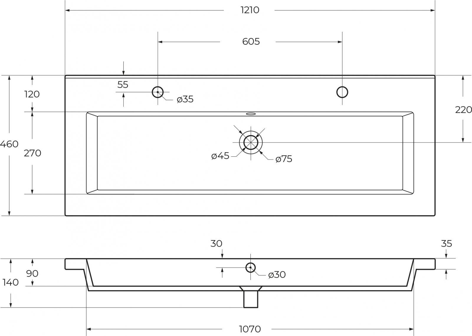 Характеристики тумба с раковиной Cezares (PLANE-1200-2C-SO-BL+CZR-8070-120-1-2)
