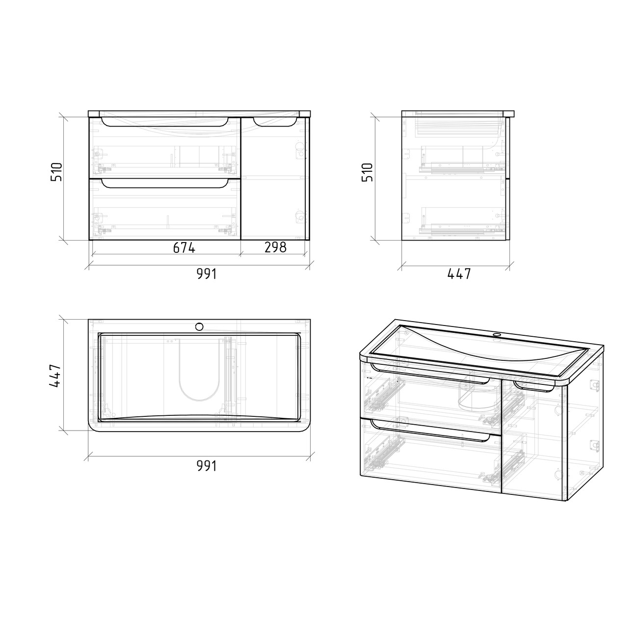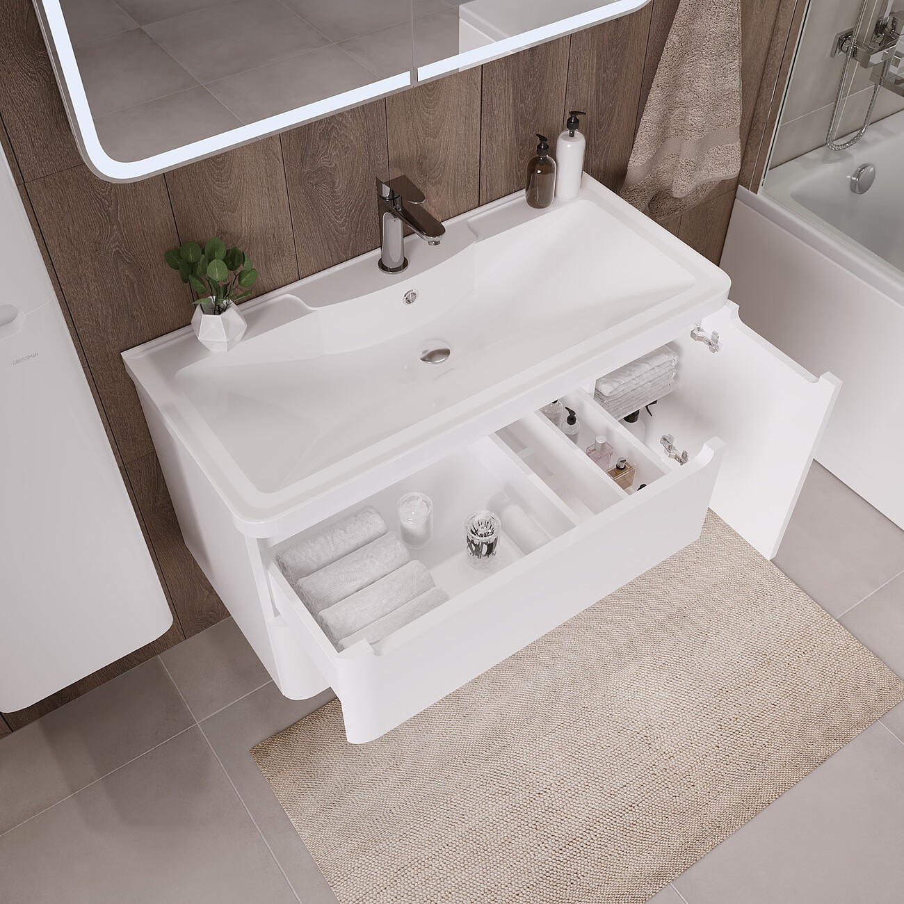 Тумба подвесная с раковиной Grossman Адель 100 см 1010001, белый глянец