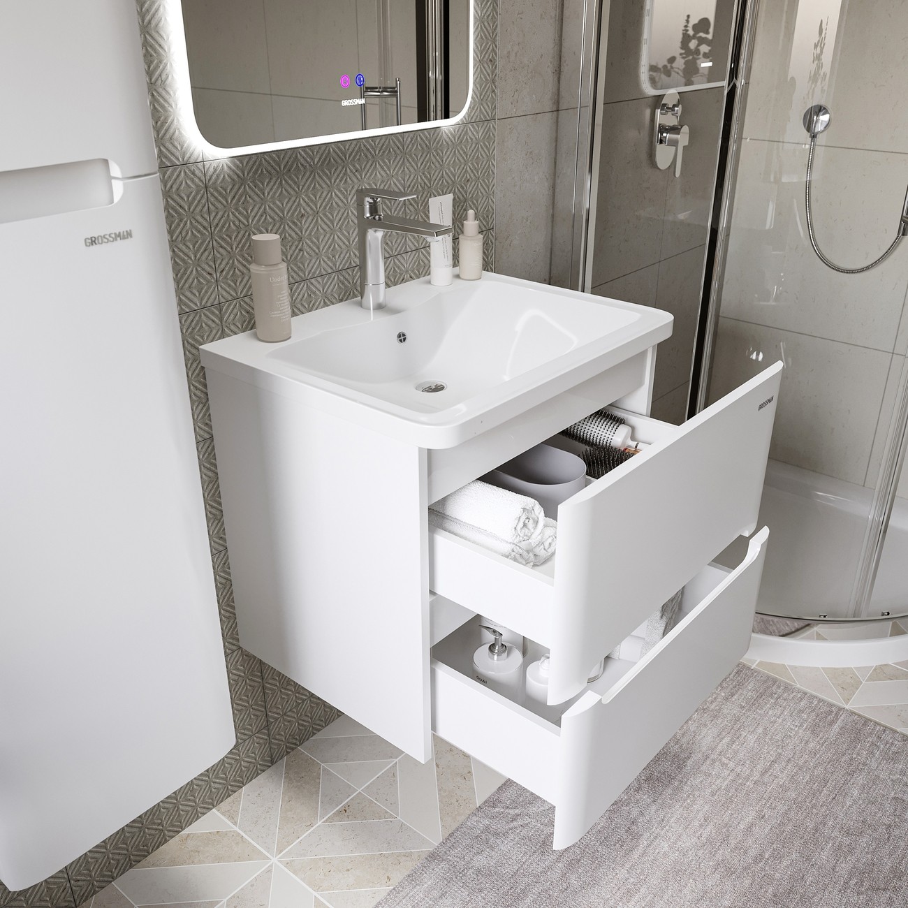 Тумба подвесная Grossman Адель 60 см с раковиной Адель 60 см, цвет белый глянец.