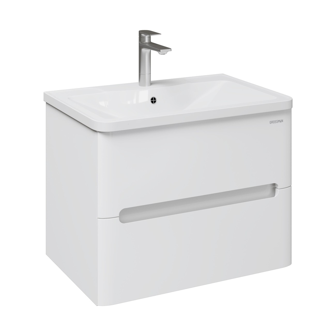 Тумба подвесная с раковиной Grossman Адель 70 см 107017, белый глянец