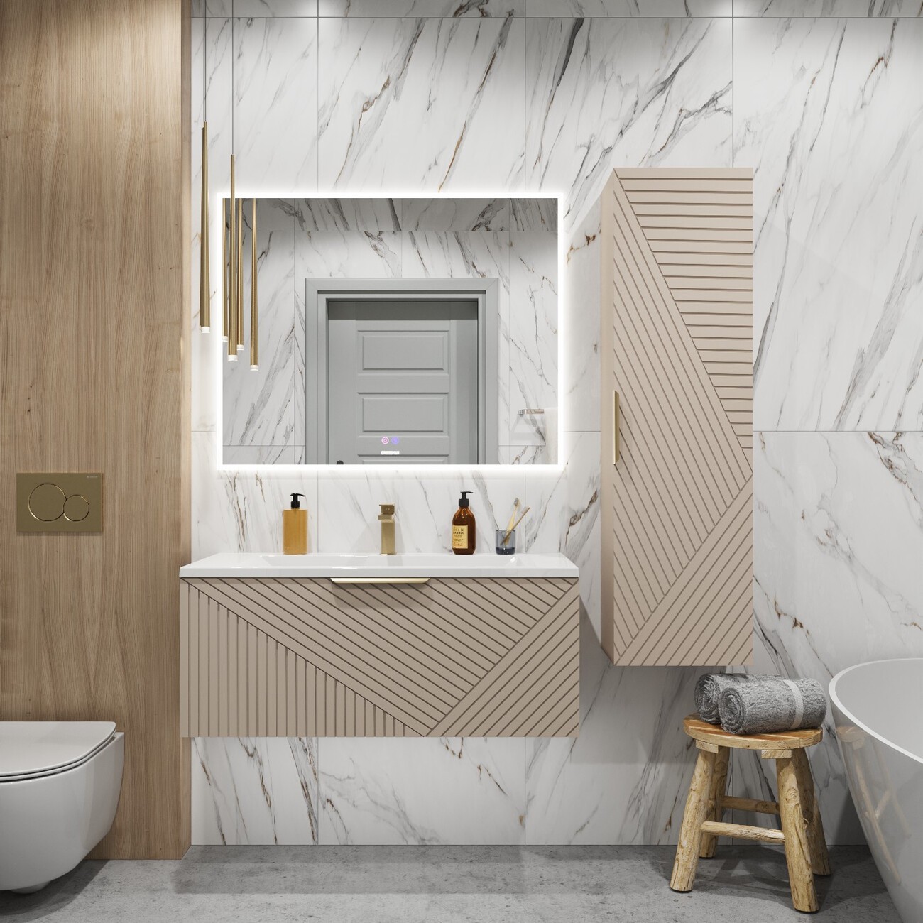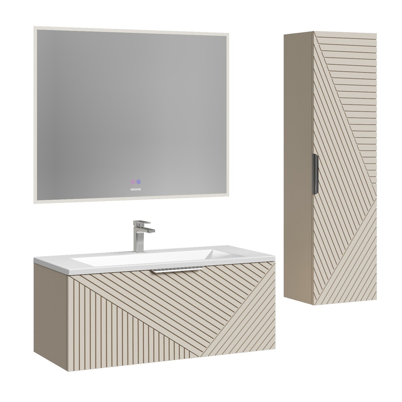 Тумба подвесная Grossman Блисс 100 см с раковиной Блисс 100 см, цвет бежевый матовый.