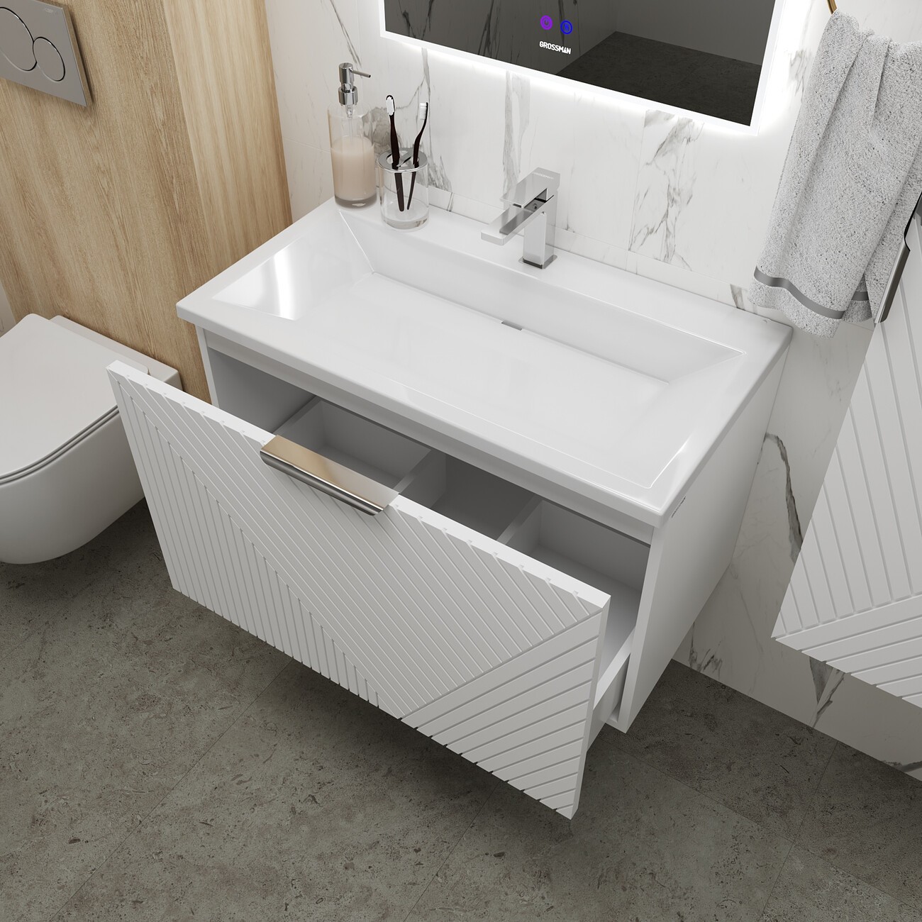 Тумба подвесная с раковиной Grossman Блисс 80 см 108046, белый матовый