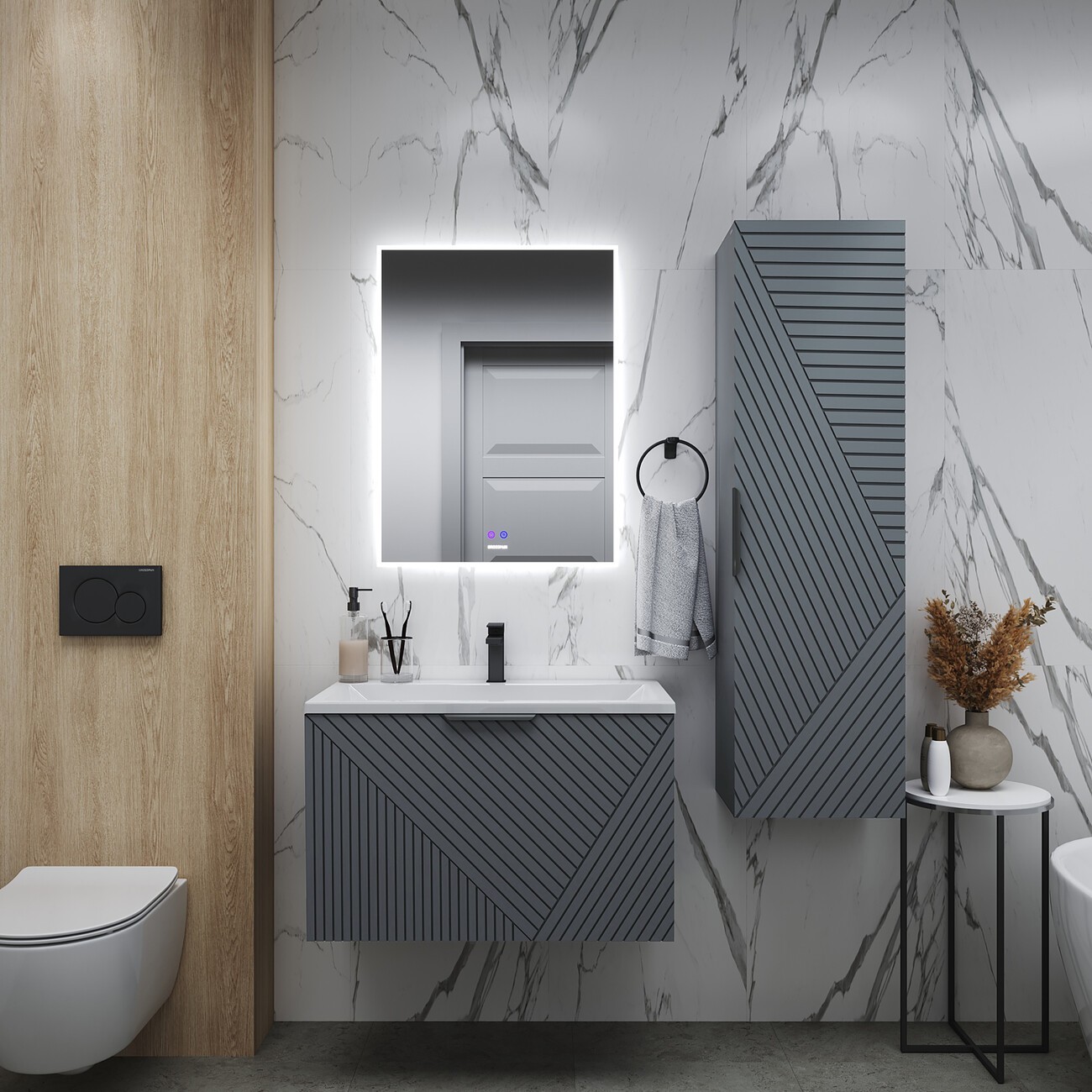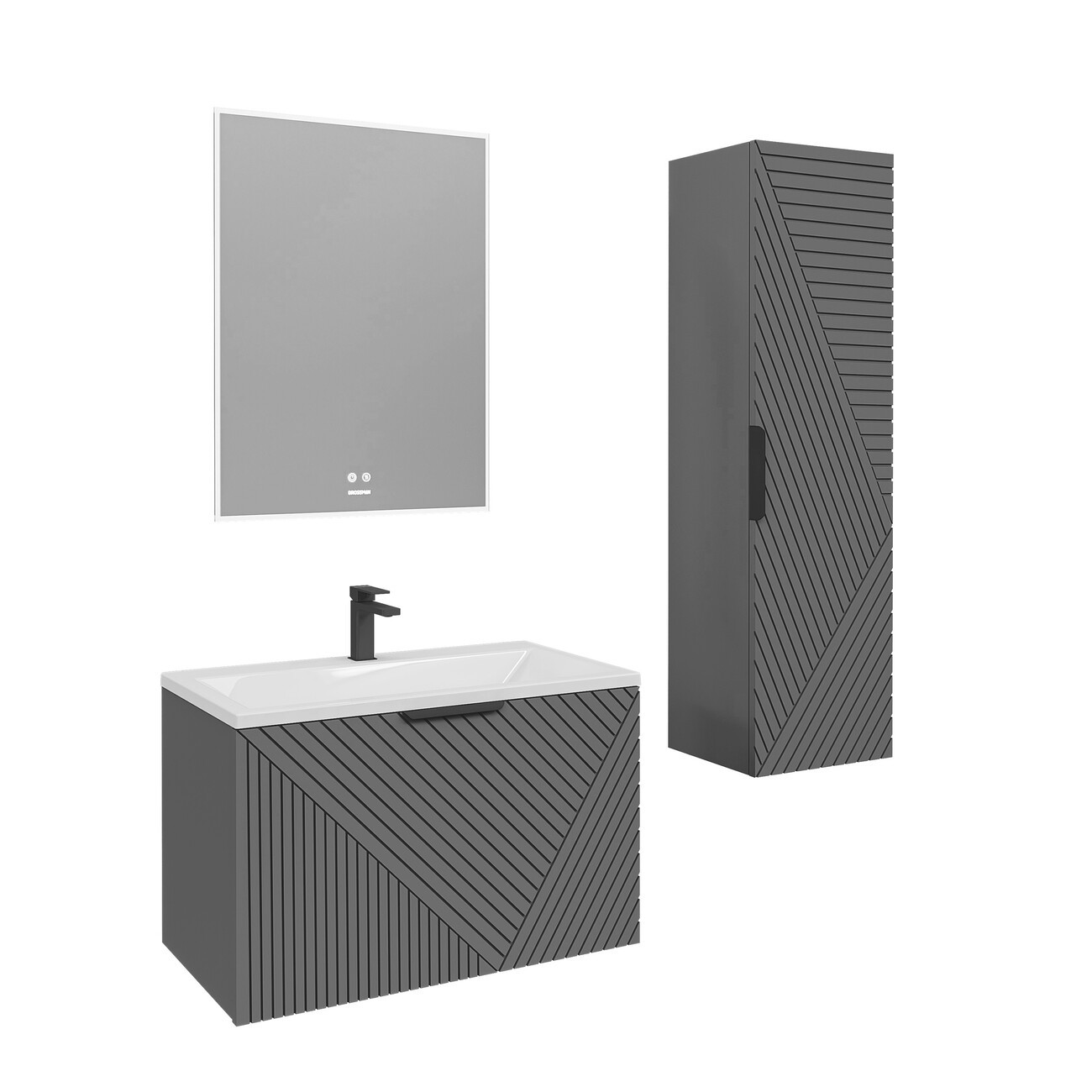 Тумба подвесная Grossman Блисс 80 см с раковиной Блисс 80 см, цвет графит матовый.