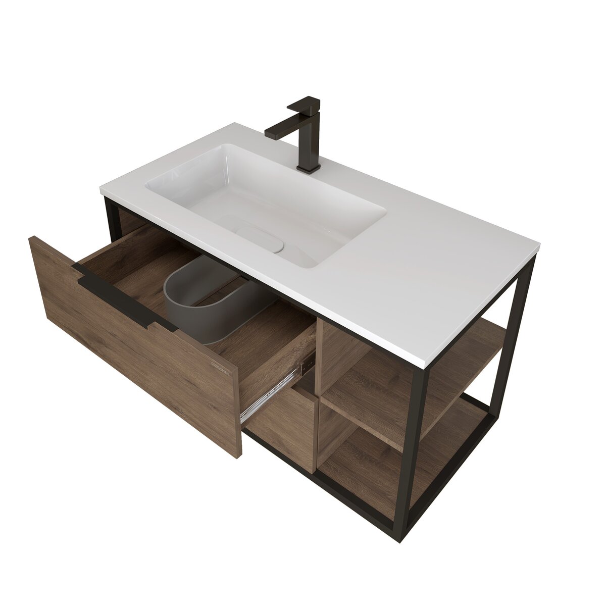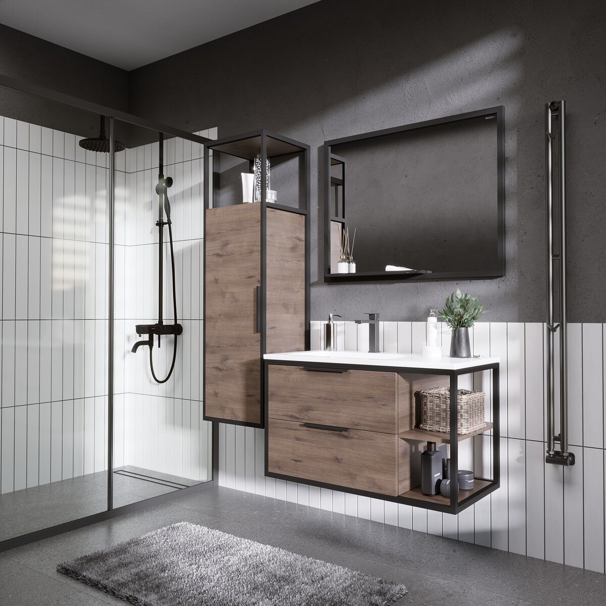 Тумба подвесная с раковиной Grossman Лофт 90 см 1090012, веллингтон/металл чёрный