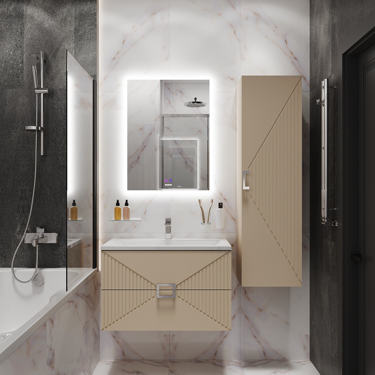 Тумба подвесная Grossman Луксор 60 см с раковиной Блисс 60 см, цвет бежевый матовый.
