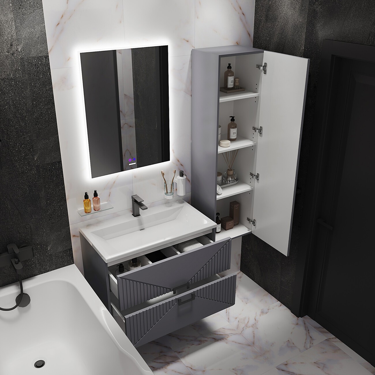 Тумба подвесная Grossman Луксор 80 см с раковиной Блисс 80 см, цвет графит матовый.