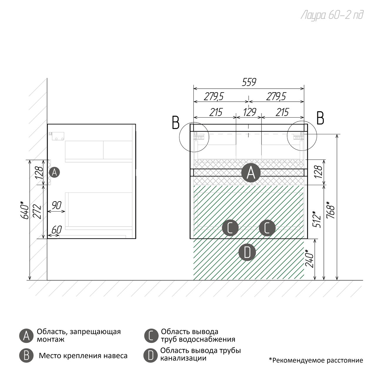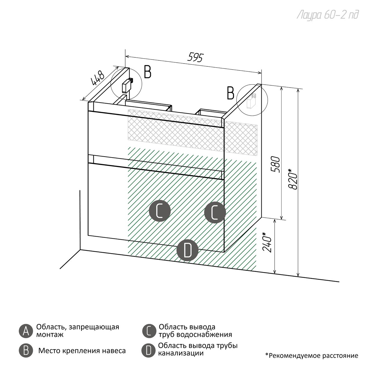 Тумба подвесная с раковиной Grossman Меркадо 60 см 106076, белая матовая