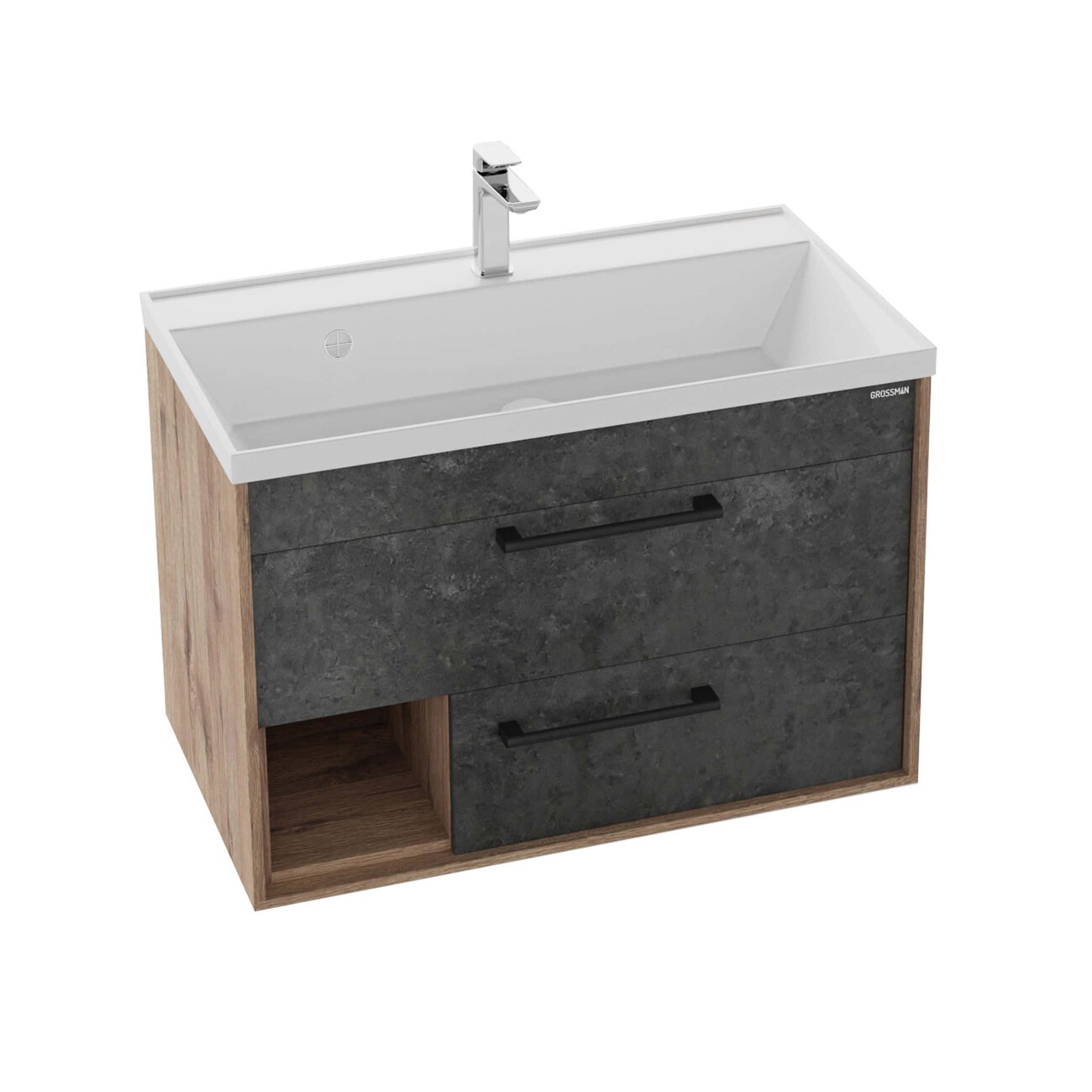 Тумба подвесная с раковиной Grossman Реал 80 см 108009, веллингтон/бетон Арья