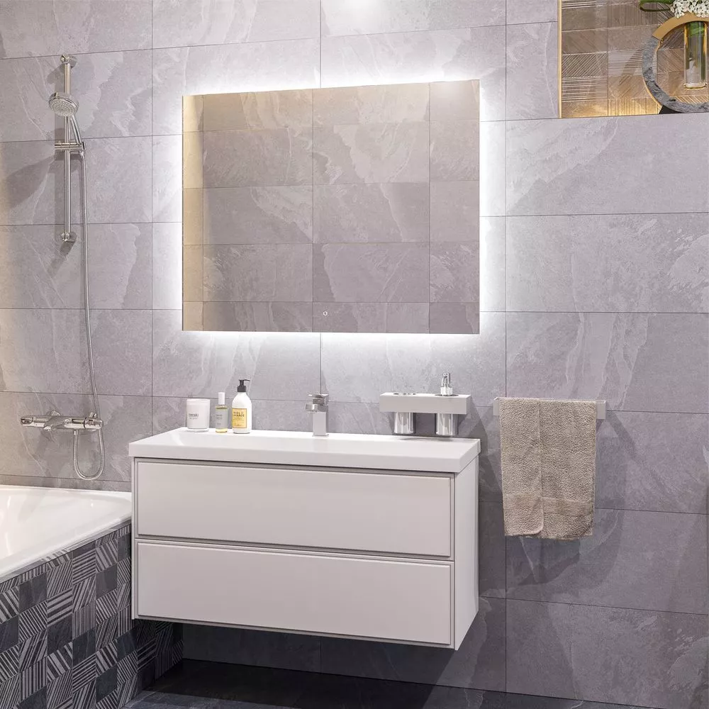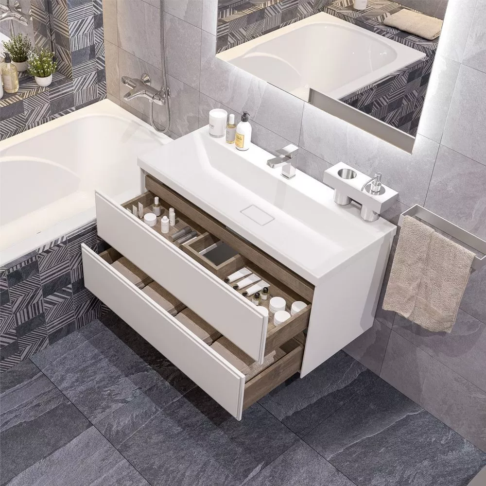 Тумба подвесная Mirsant Dante 100 см с раковиной Style 100, цвет белый.