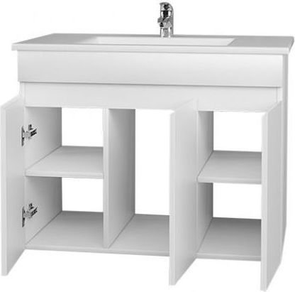 Тумба подвесная Mirsant Next 80 см с раковиной Sky 80, 3 дверцы, цвет белый.