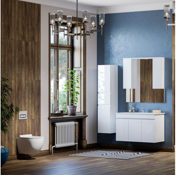 Тумба подвесная с раковиной Mirsant Next 80 см (раковина Sky 80), белый