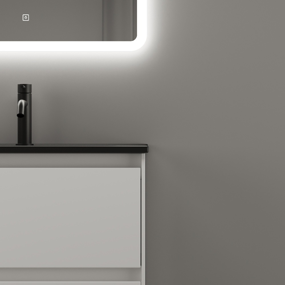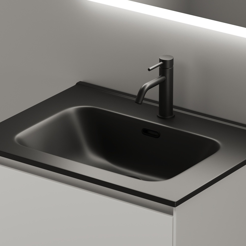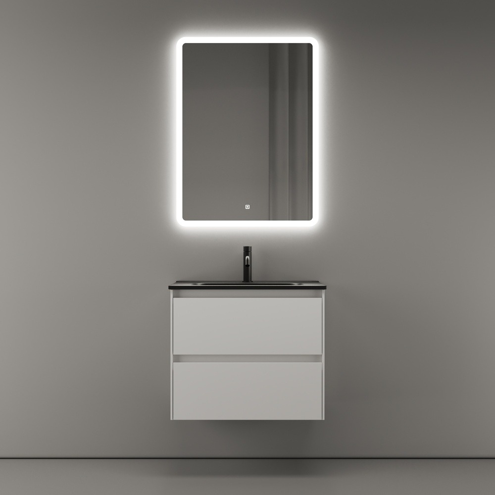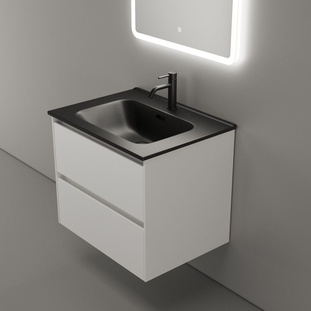 Тумба подвесная Sancos Cento 60 см CN60W с доводчиком и раковиной Element CN7001MB, цвет белый глянец.