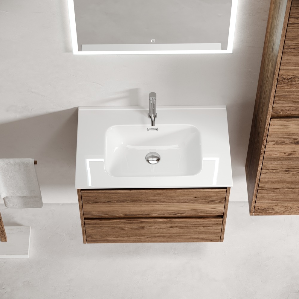 Тумба подвесная с раковиной Sancos Libra 60 см LB60ECH, дуб чарльстон (раковина Element CN7001)