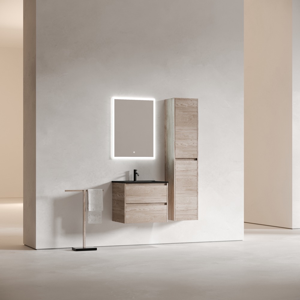 Тумба подвесная Sancos Libra 60 см LB60EG c доводчиком и раковиной Element CN7001MB, цвет дуб галифакс натуральный.