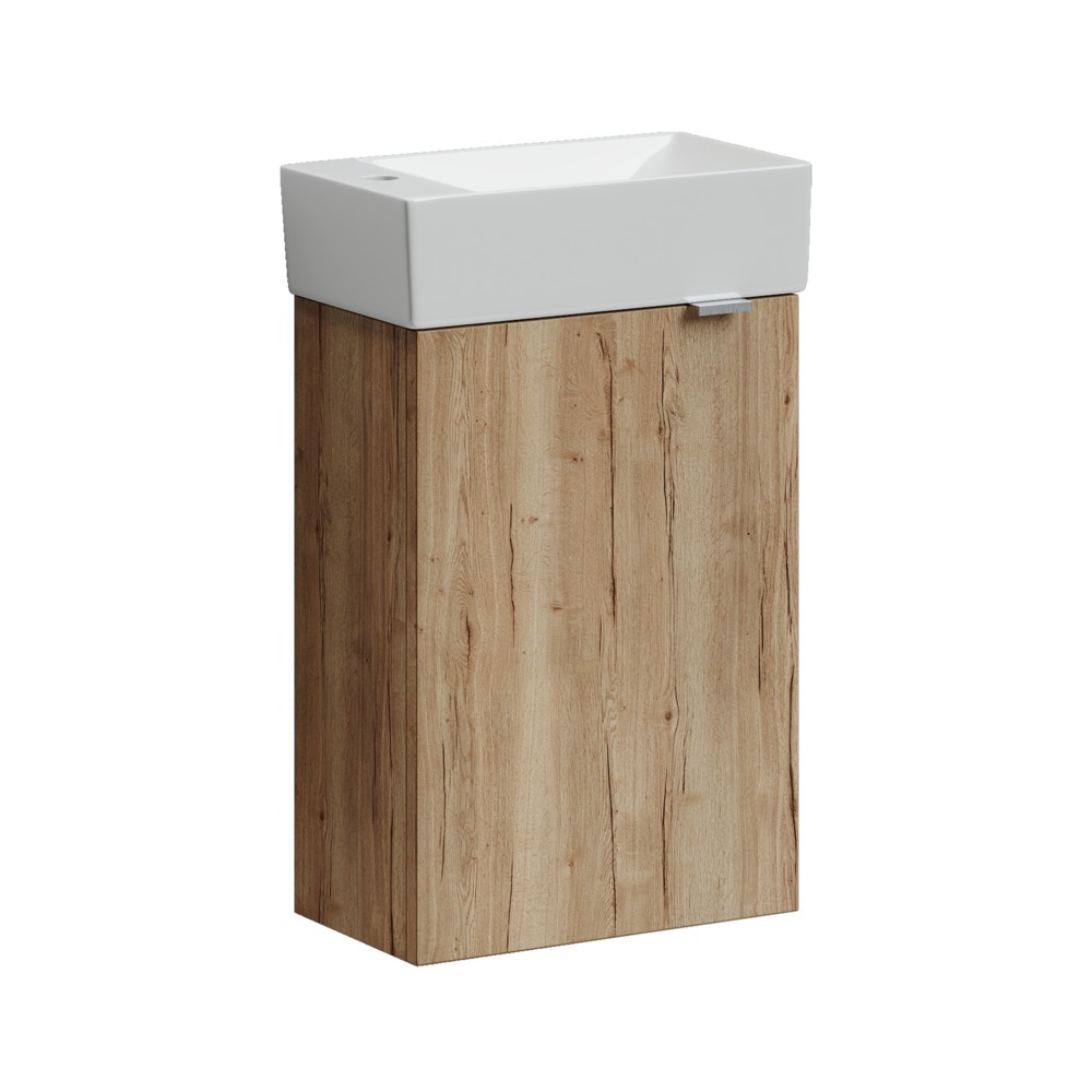 Тумба подвесная Sancos Mini 37 см MN35EGL, левосторонняя, с доводчиком и раковиной Element CN5008, цвет дуб галифакс натуральный.