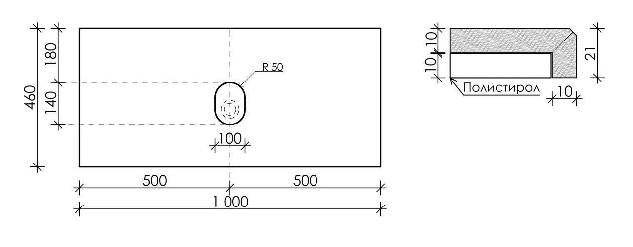 - Столешница для ванной комнаты из керамогранита, для установки на подвесную тумбу. C готовым отверстием для установки накладной раковины. Без заранее просверленного отверстия под смеситель.Размер 1000 x 460. Цвет Black sky. На тумбу фиксируется с помощью герметика.