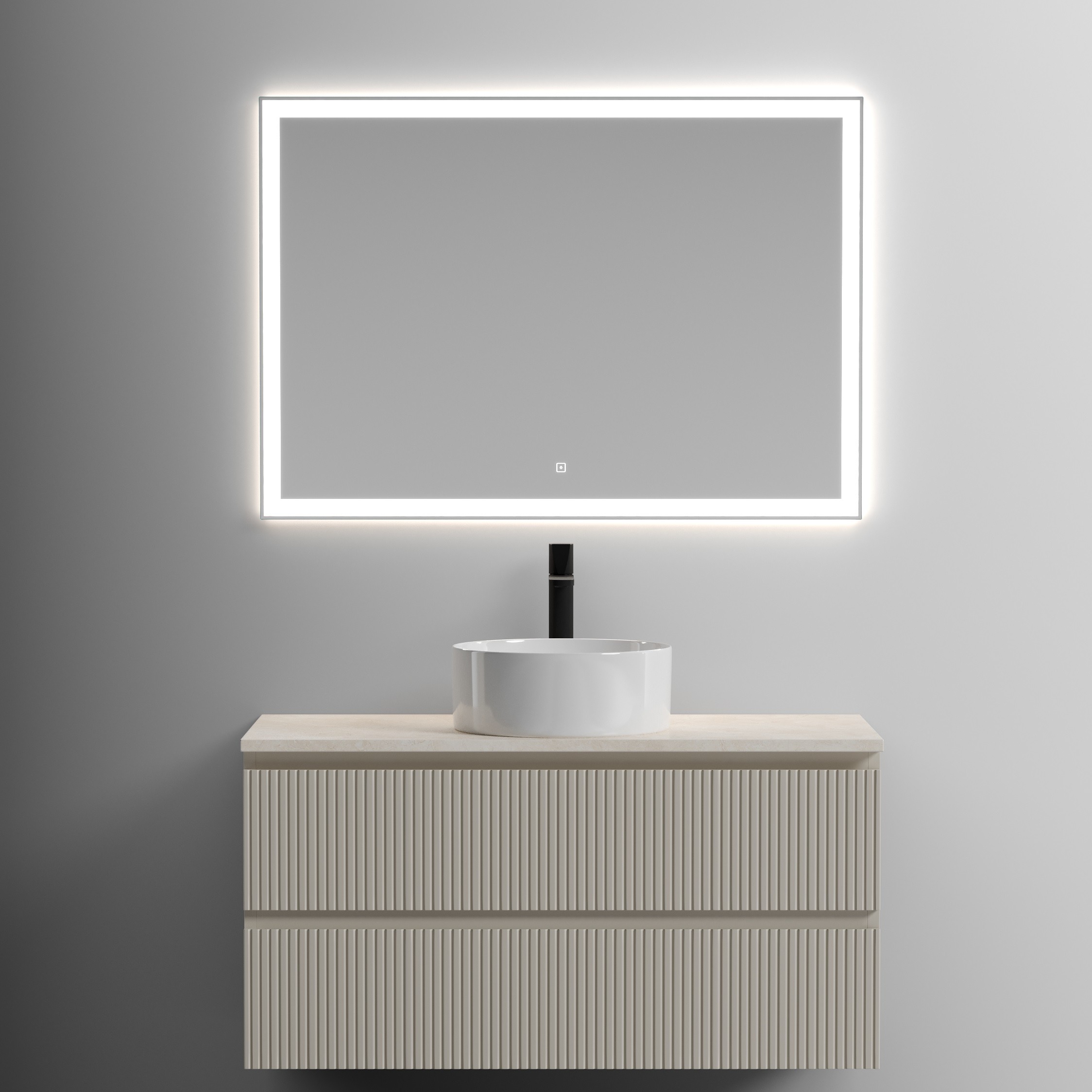 Тумба подвесная Sancos Snob T 100 см SNT100CE с доводчиком, раковина Element CN6032, столешница с отверстием под смеситель TT100A2X, цвет Beige Soft.