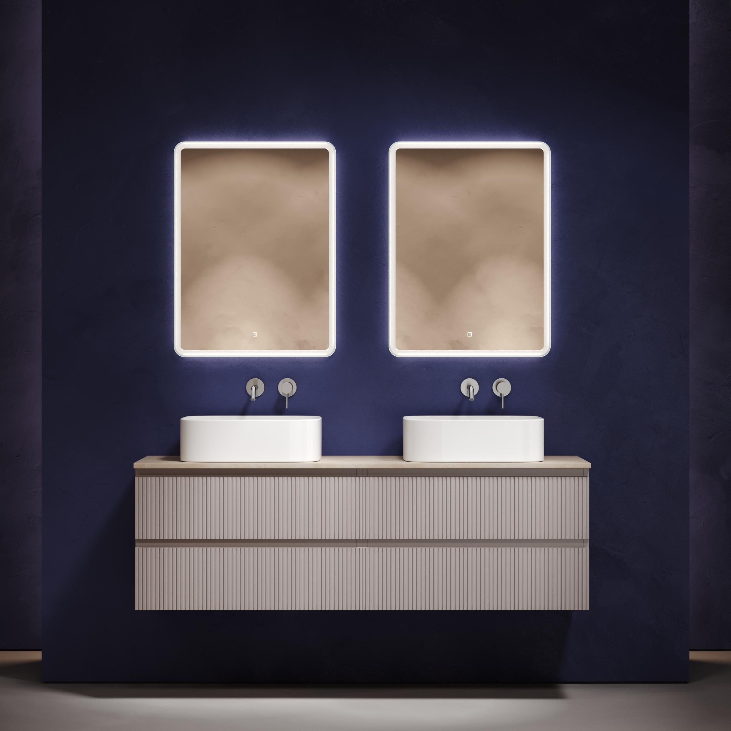 Тумбы подвесные Sancos Snob T 80 см SNT80SM с доводчиками, 2 раковины Element CN6052, столешница без отверстия под смеситель TT160A2, цвет Doha Soft.
