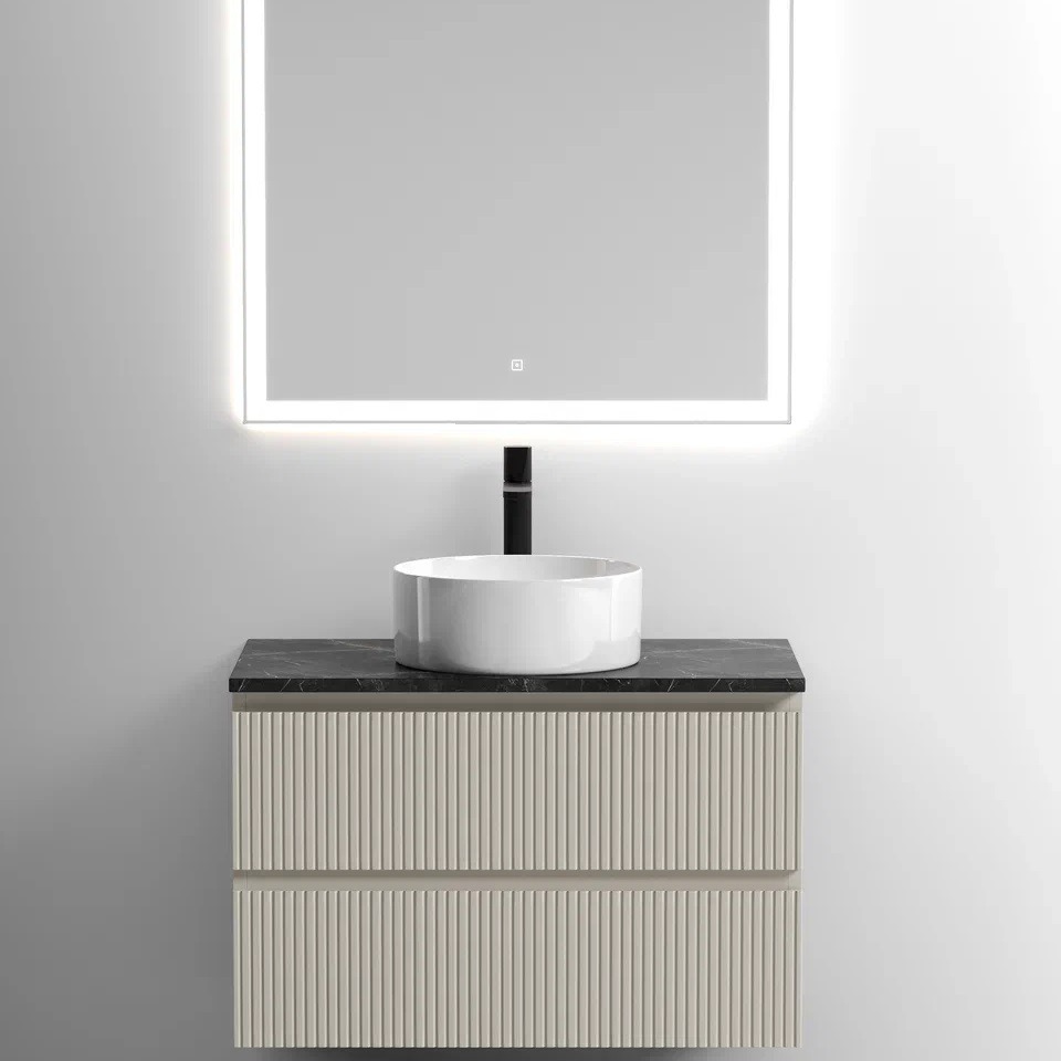 Тумба подвесная Sancos Snob T 80 см SNT80CE с доводчиком, раковина-чаша Element CN6032, столешница с отверстием под смеситель TT80A1X, цвет Beige Soft.