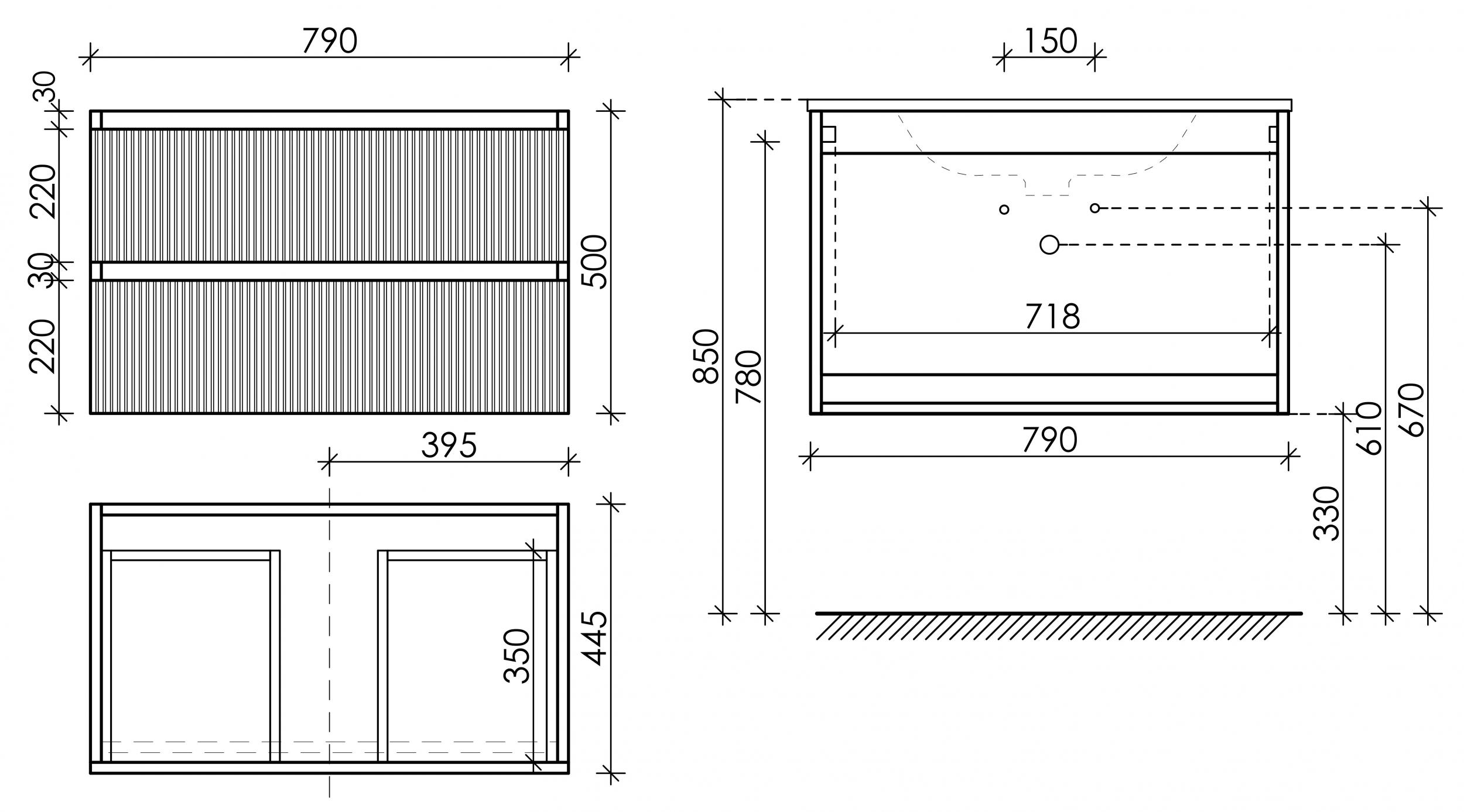 - Тумба подвесная Snob T c двумя ящиками оснащенными доводчиками скрытого монтажа с системой плавного закрывания. Каркас и фасад тумбы выполнен из МДФ, покрытие пвх - плёнка в цвете «Doha Soft».Размер 790х445х500.