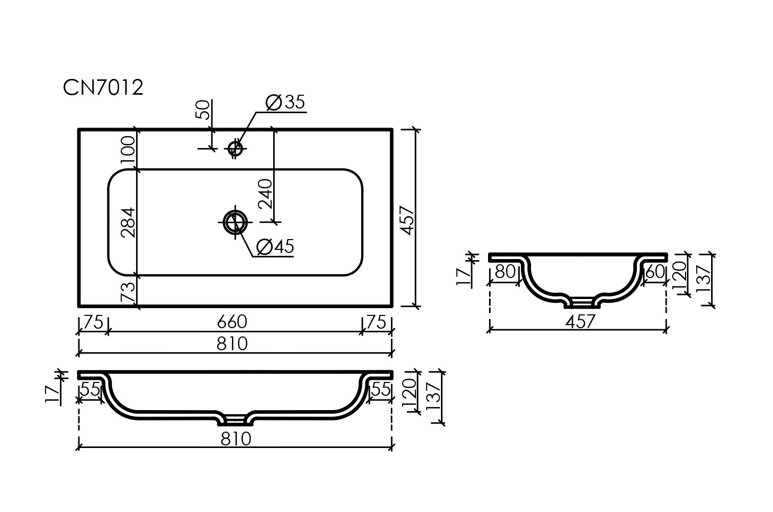 - Раковина накладная Grace прямоугольная, с отверстием под смеситель, 810*457*137 мм, цвет белый