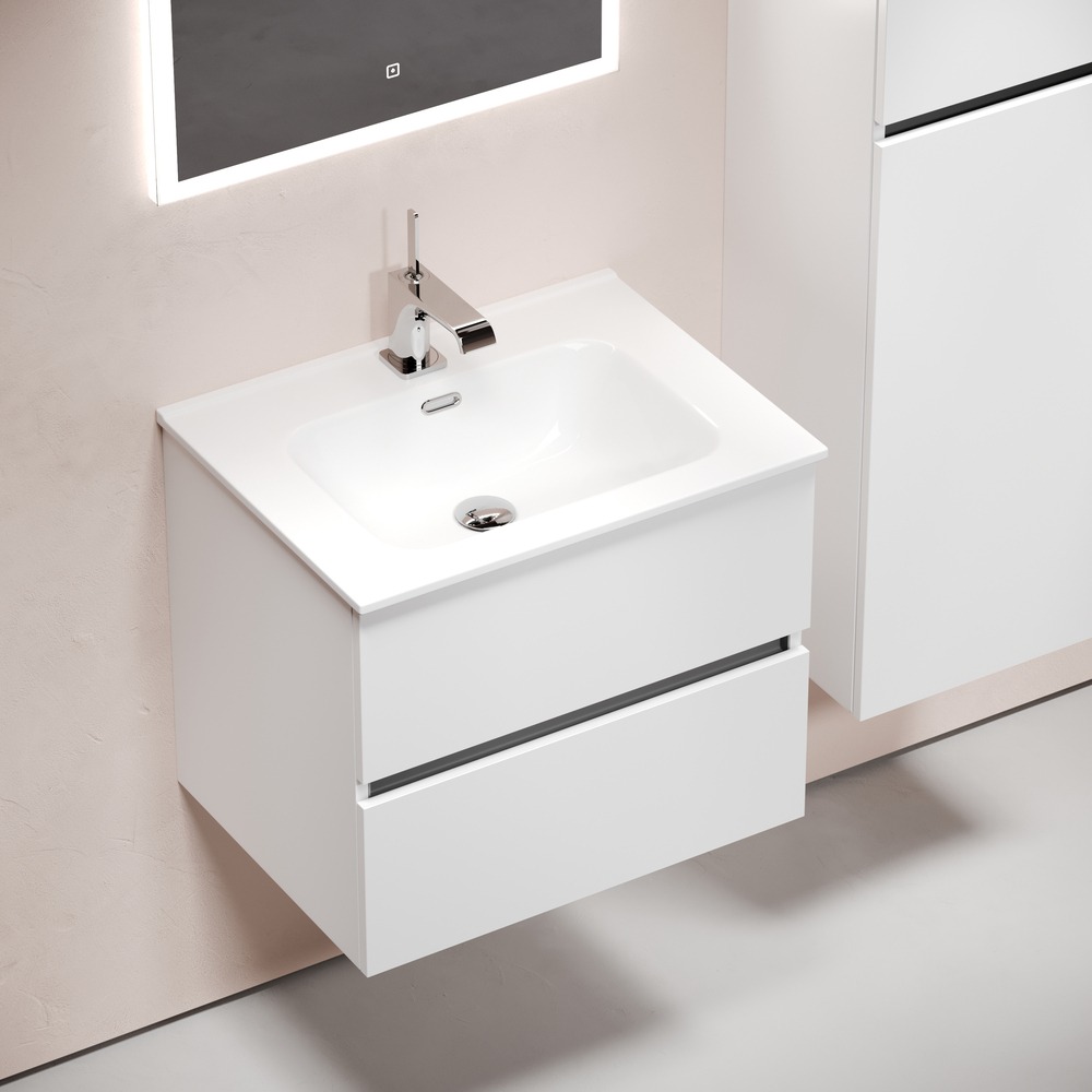 Тумба подвесная Sancos Urban 60 см UR60W c доводчиком и раковиной Element CN7001, цвет белый глянец.