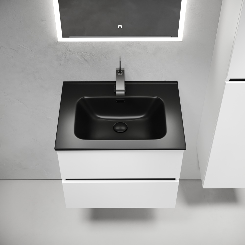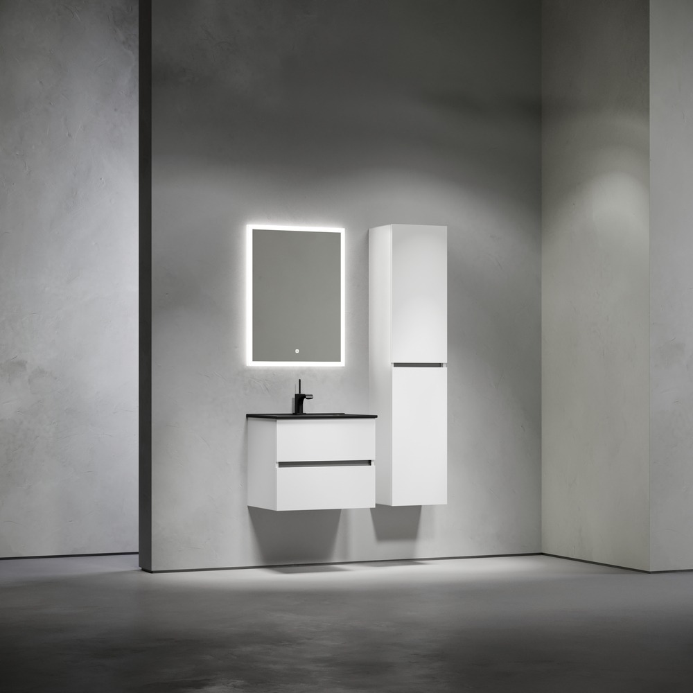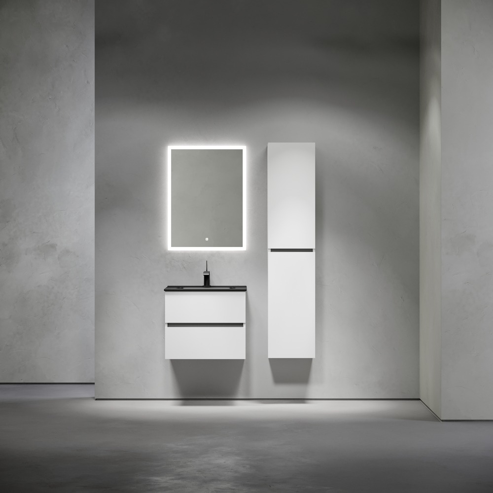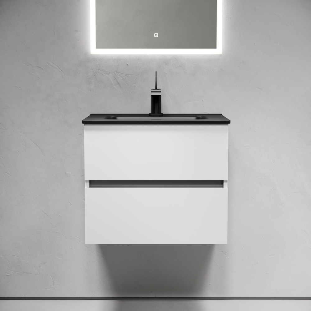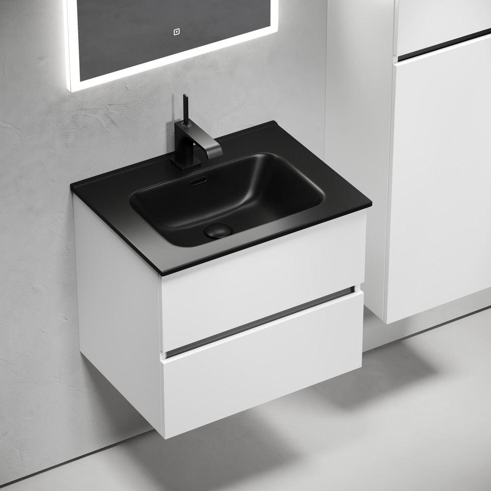 Тумба подвесная Sancos Urban 60 см UR60W с доводчиком и раковиной Element CN7001MB, цвет белый глянец.