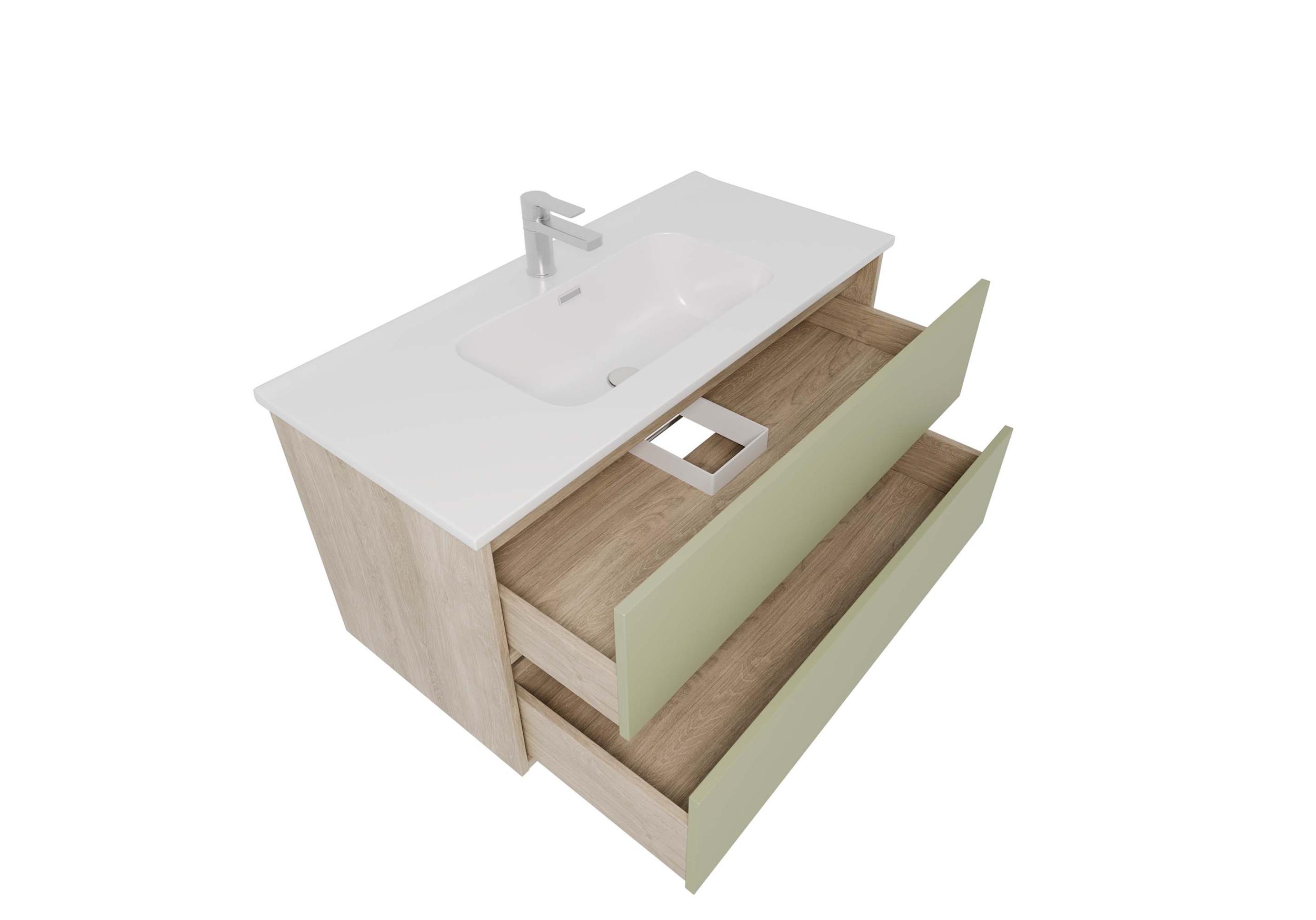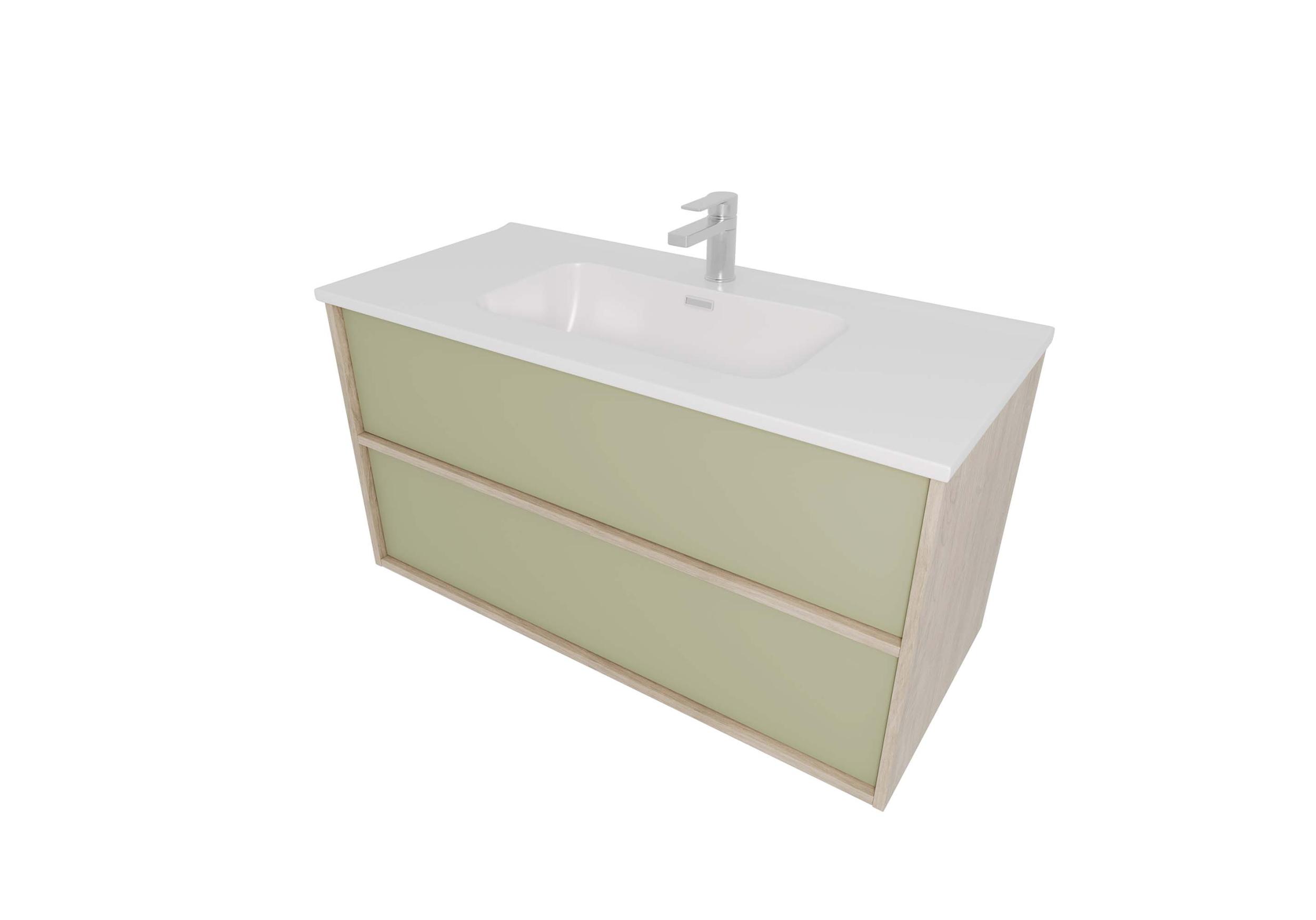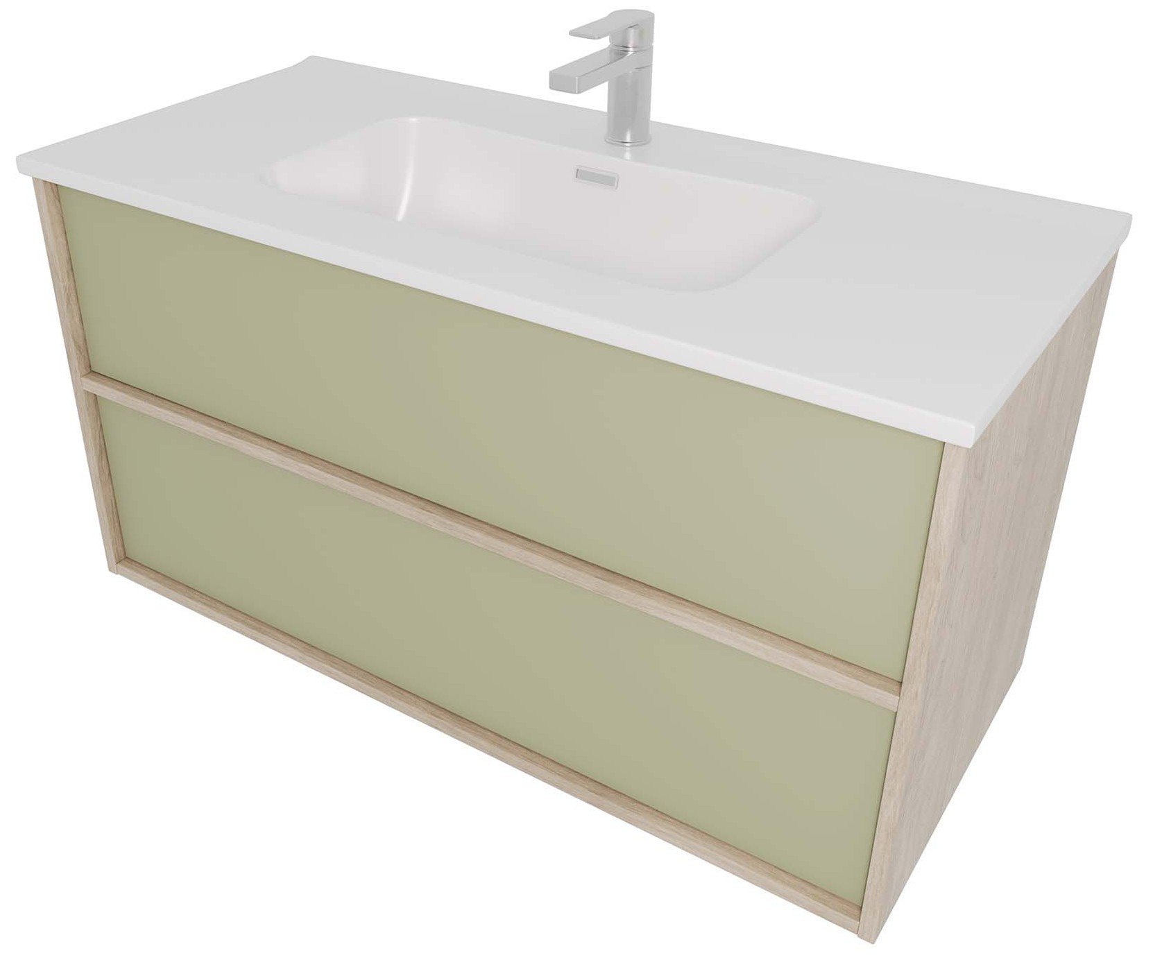 Тумба подвесная с раковиной-столешницей Aquatek Либра 100 см AQ66100-DO-GS, дуб Давос/шалфей зелёный