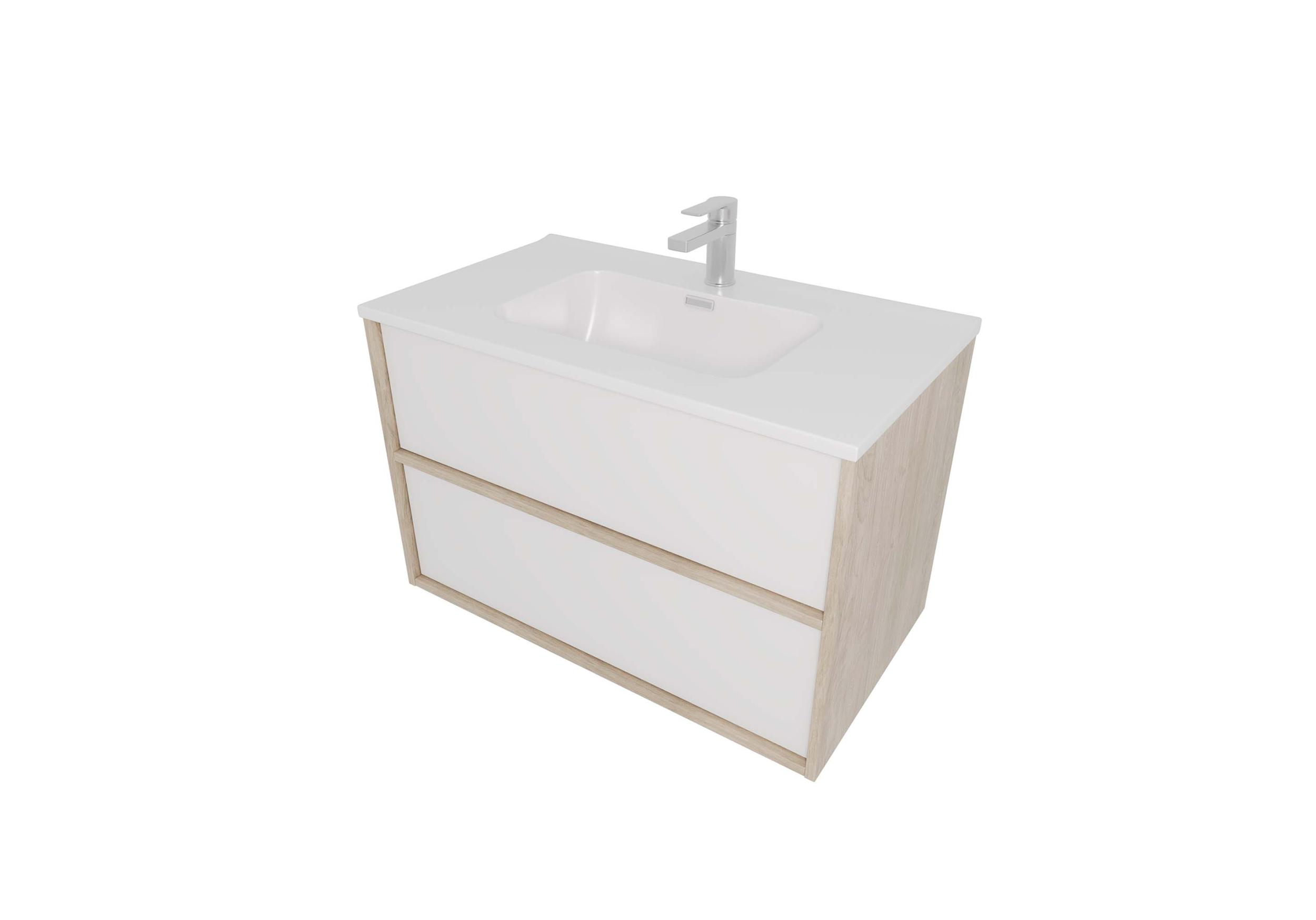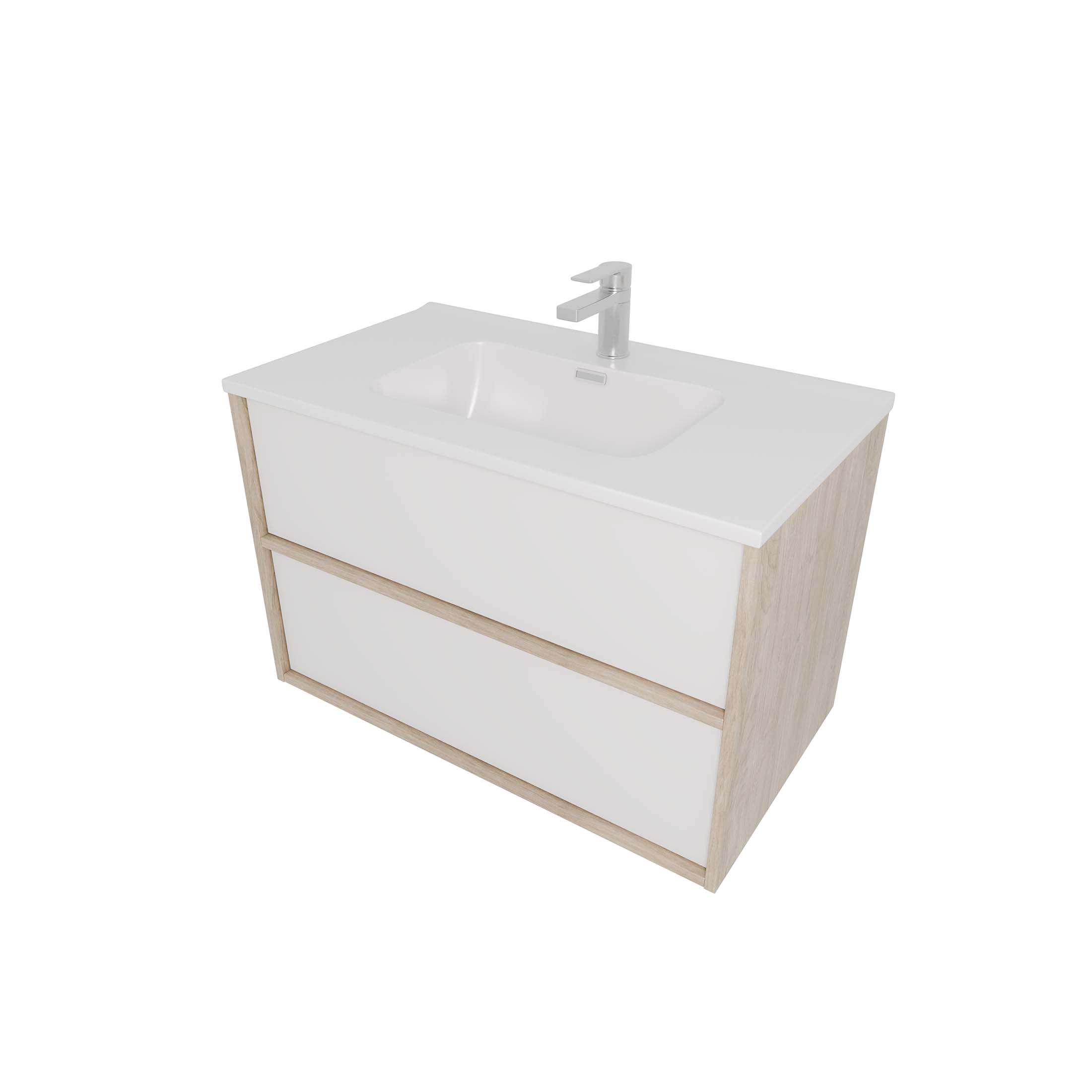 Тумба подвесная с раковиной-столешницей Aquatek Либра 80 см AQ66080-DO-MW, дуб Давос/белый матовый