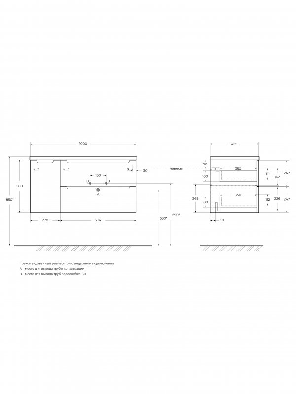 Описание тумба с раковиной-столешницей BelBagno ETNA-1000-2C-1A-SO-AO-R+BB1000ETL-R