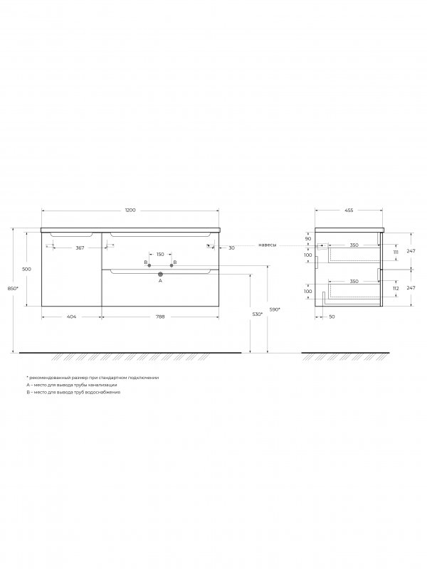 Характеристики тумба с раковиной-столешницей BelBagno (ETNA-1200-2C-1A-SO-VO-R+BB1200ETL-R)