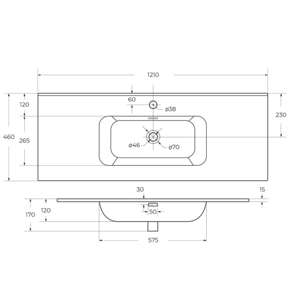 Характеристики тумба с раковиной-столешницей Cezares (ECO-CER-N-1200-2C-SO-GCO-P+CZR-8095-120)