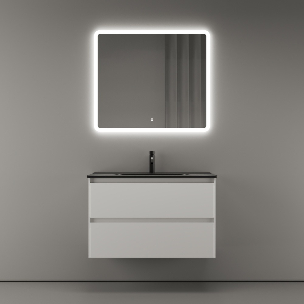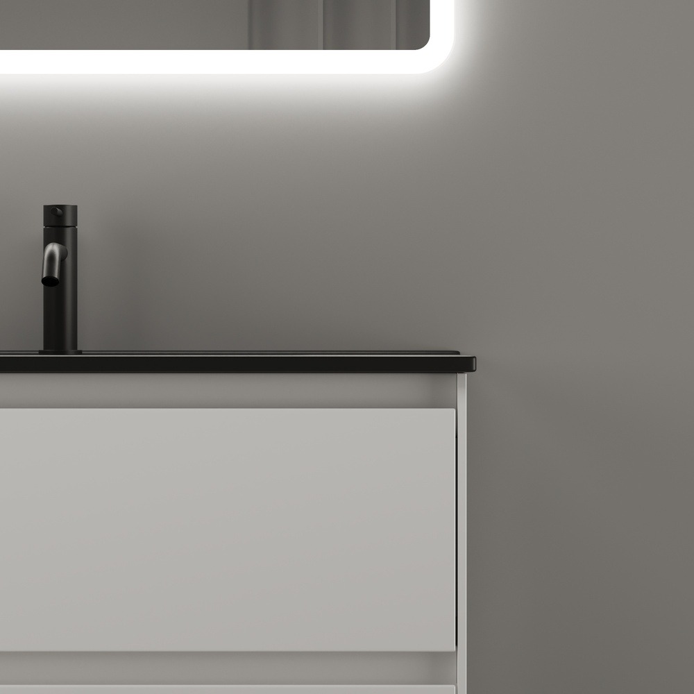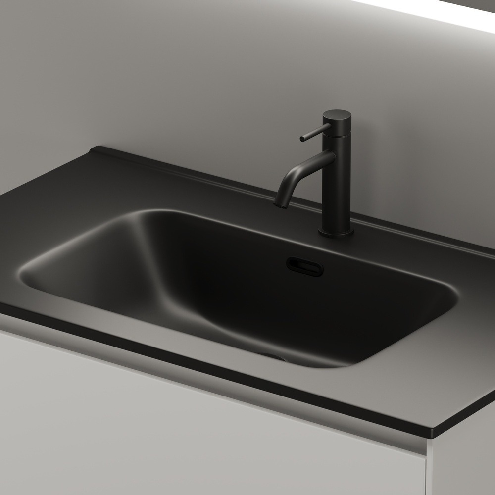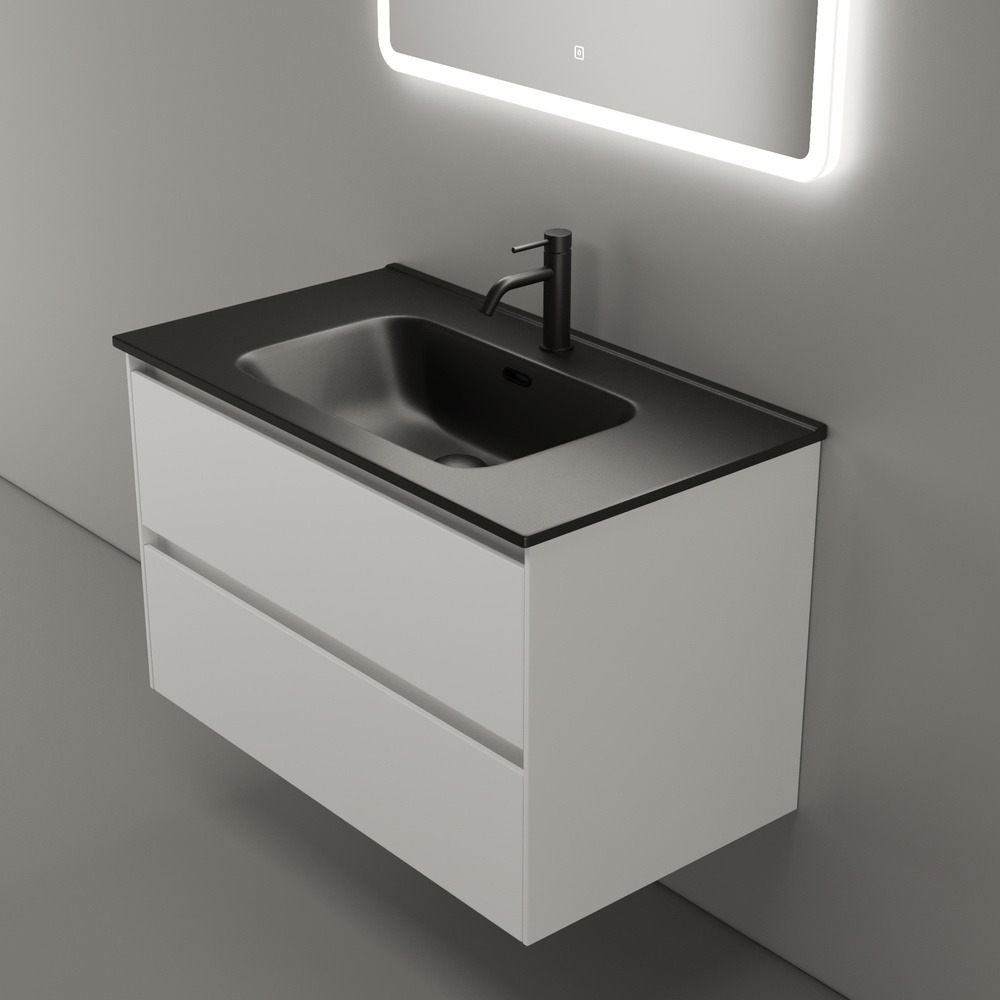 Тумба подвесная Sancos Cento 80 см CN80W с доводчиком и раковиной-столешницей Element CN7005MB, цвет белый глянец.