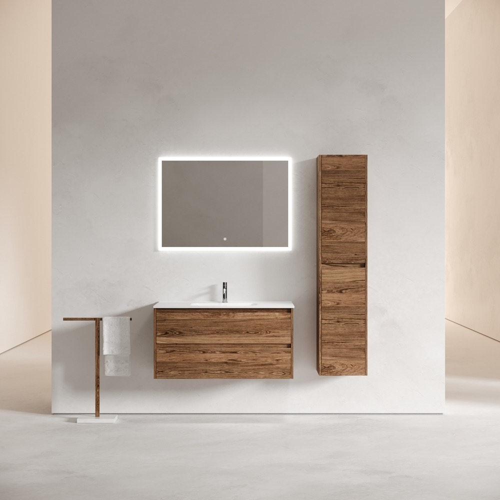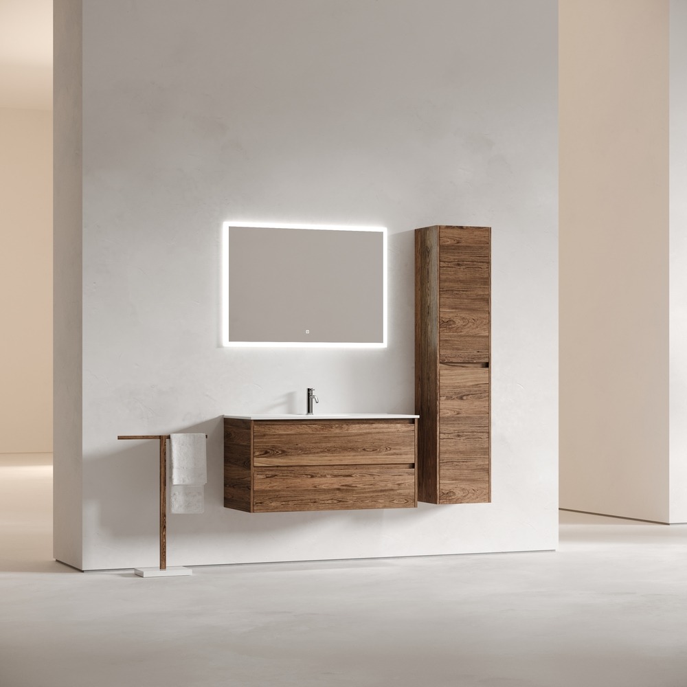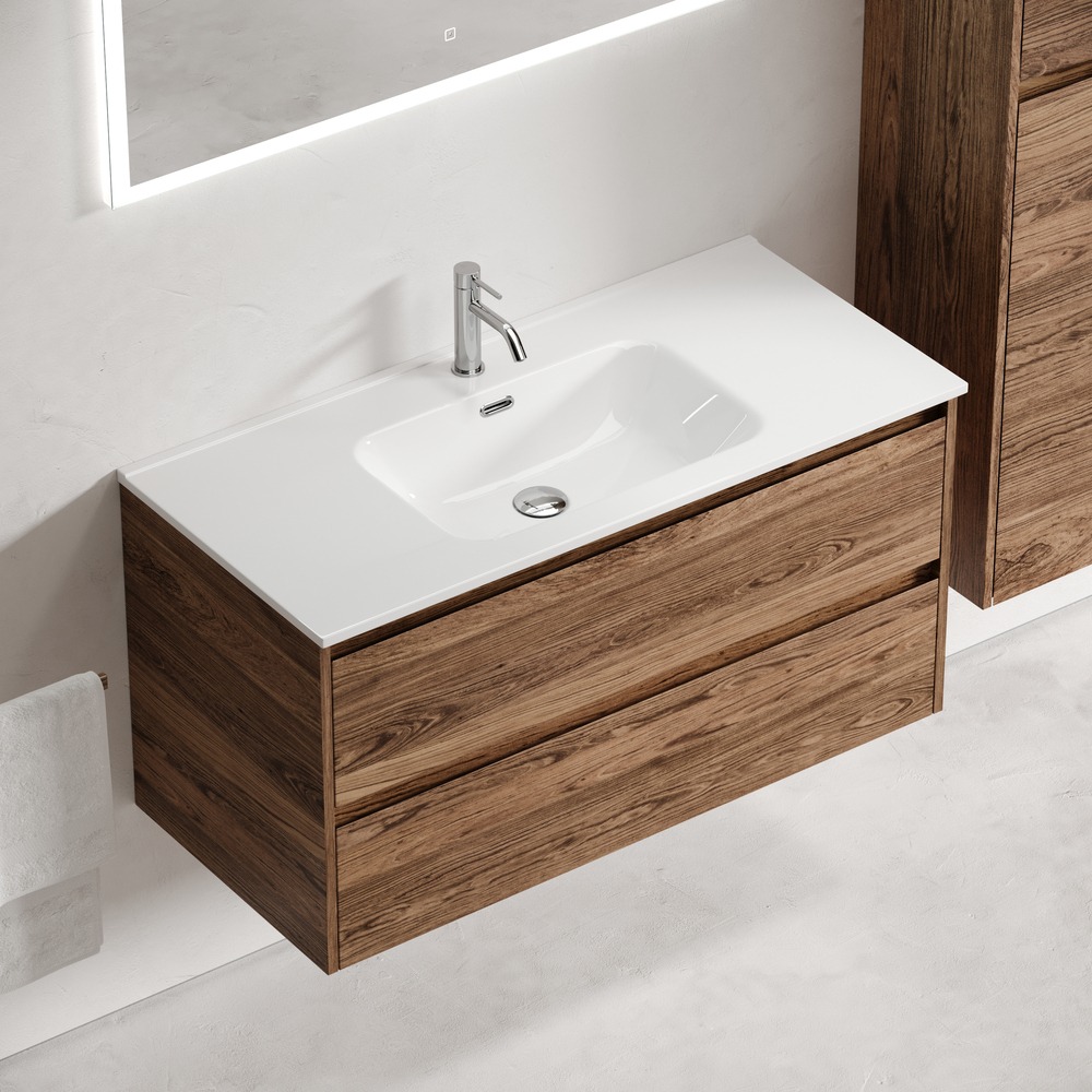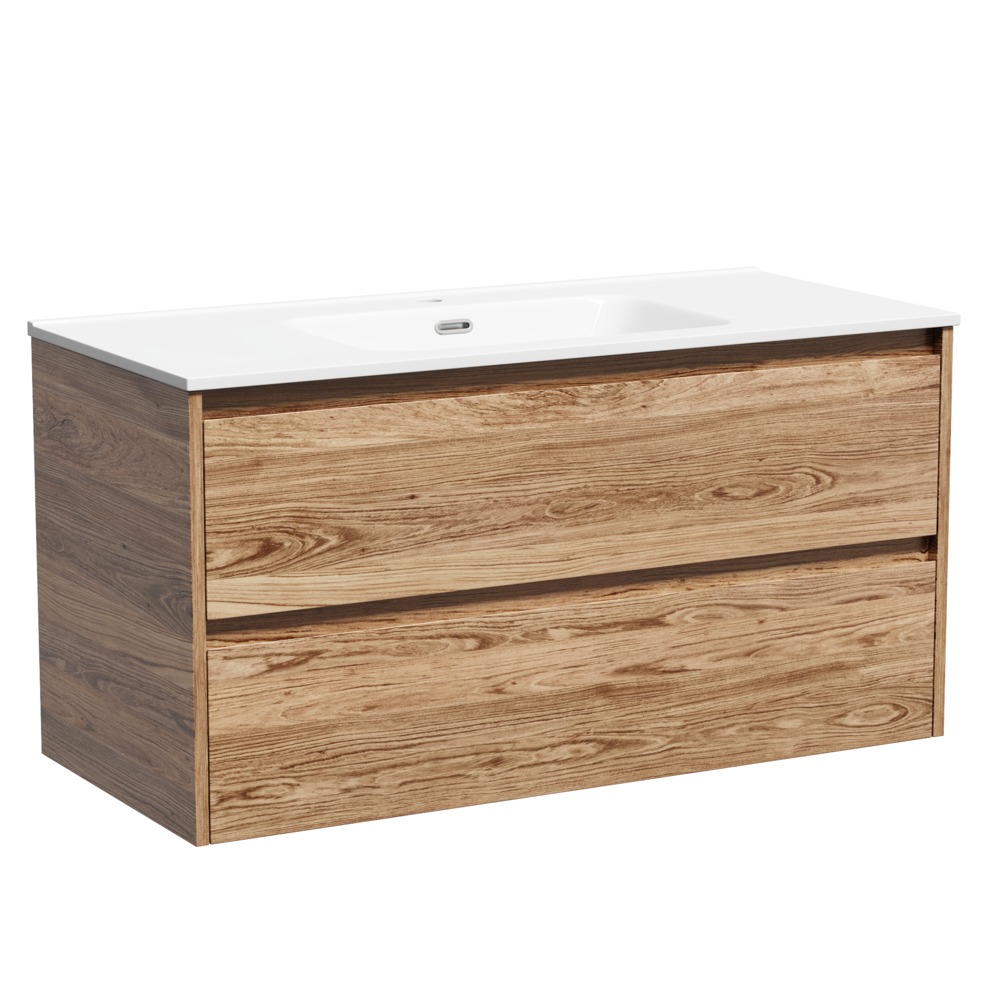 Тумба подвесная с раковиной-столешницей Sancos Libra 100 см LB100ECH, дуб чарльстон (раковина Element CN7003)