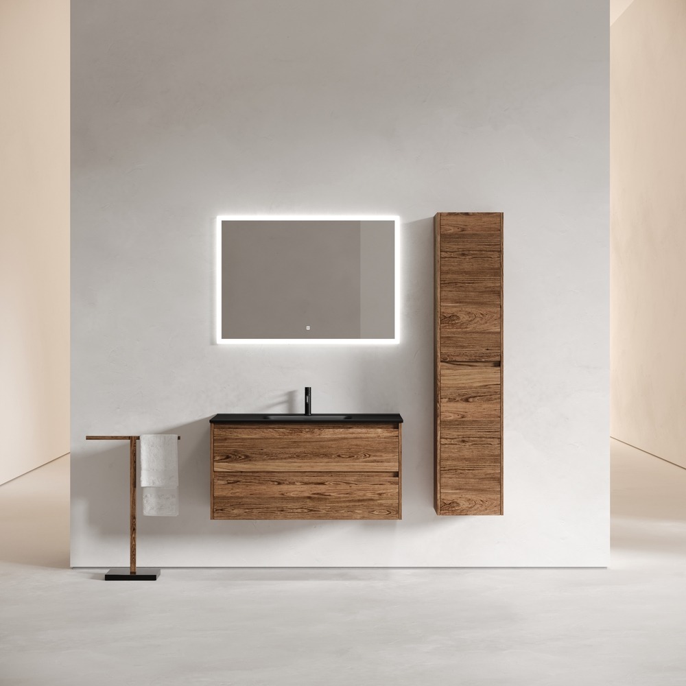 Тумба подвесная с раковиной-столешницей Sancos Libra 100 см LB100ECH, дуб чарльстон (раковина Element CN7003MB)