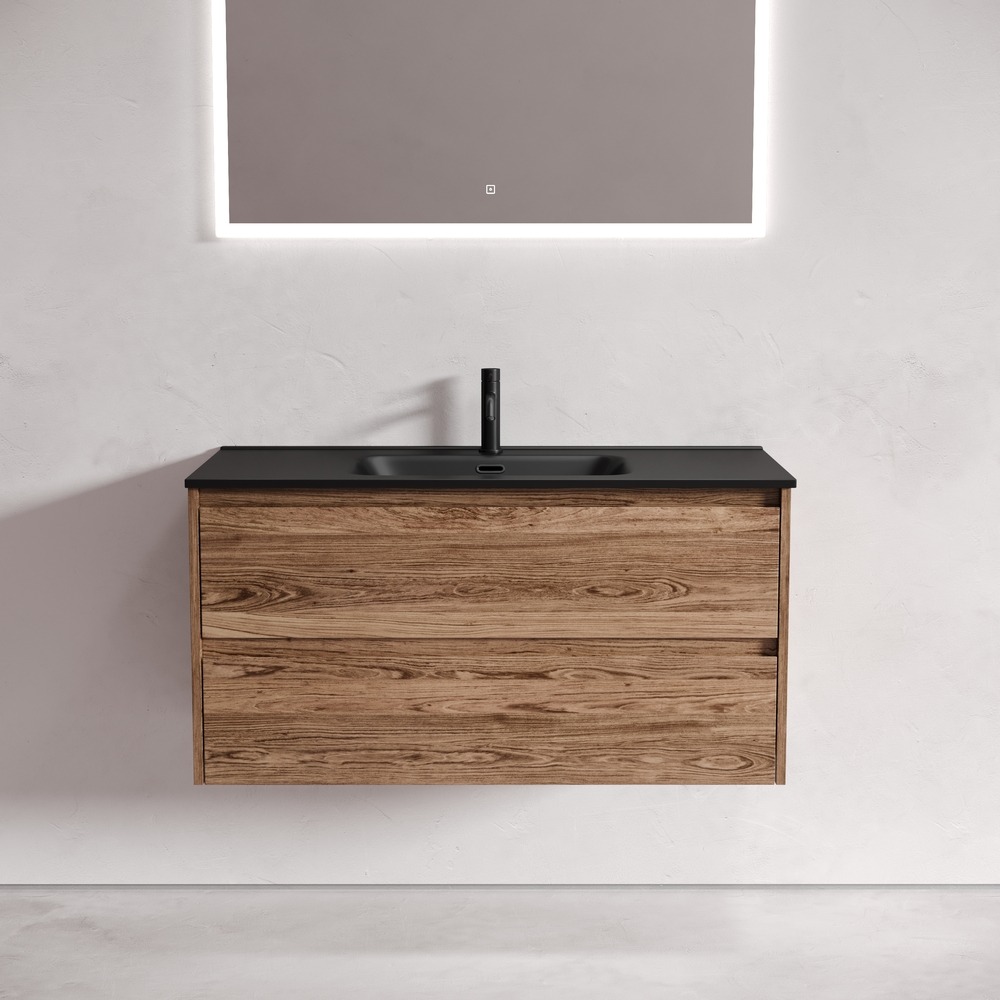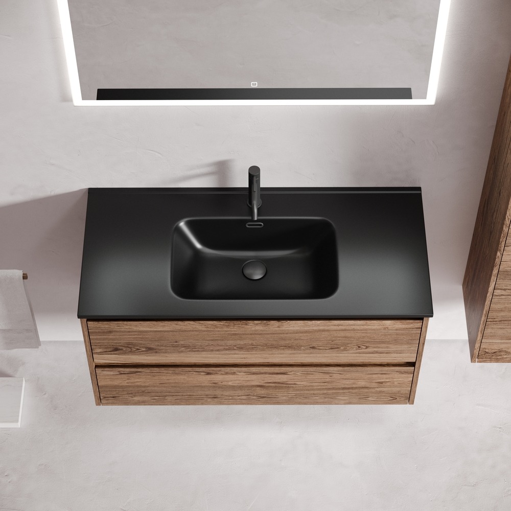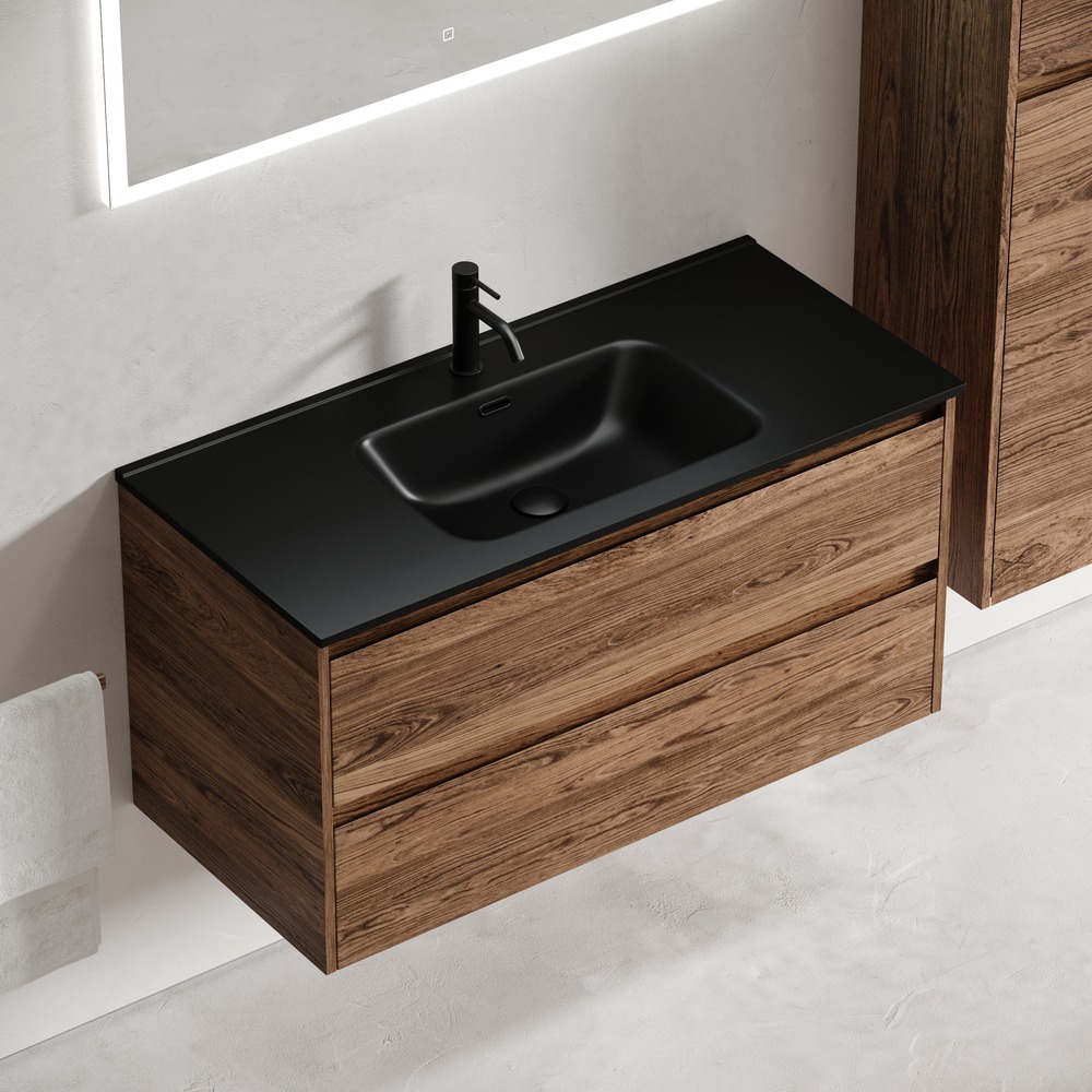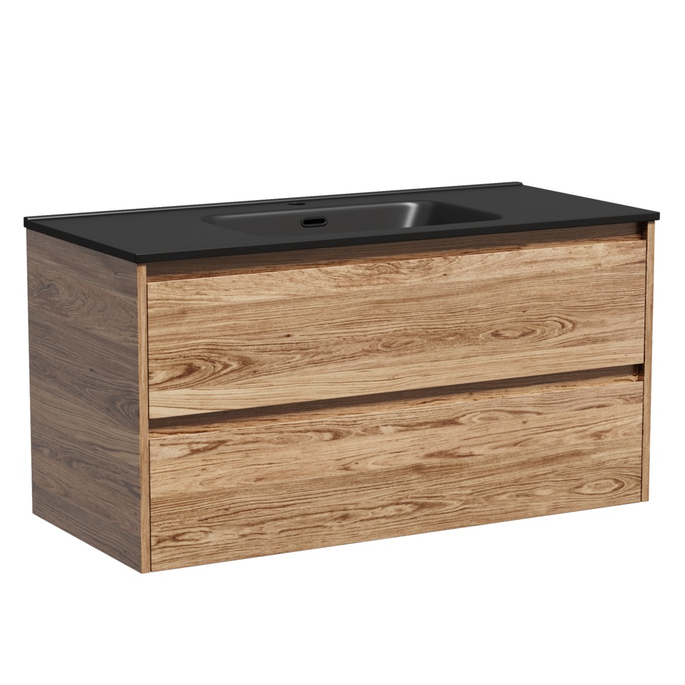 Тумба подвесная с раковиной-столешницей Sancos Libra 100 см LB100ECH, дуб чарльстон (раковина Element CN7003MB) - фото