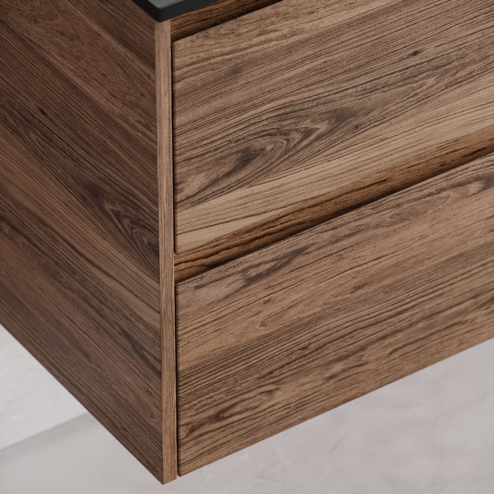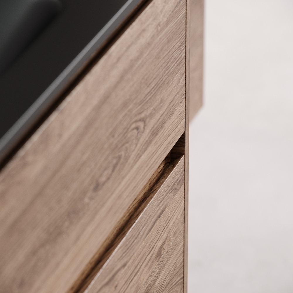 • Тумба подвесная Libra c двумя ящиками оснащенными доводчиками скрытого монтажа с системой плавного закрывания и с ручкой по всей длине ящика. Каркас и фасад тумбы выполнен из ЛДСП в цвете «дуб чарльстон». Покрытие - ламинат.