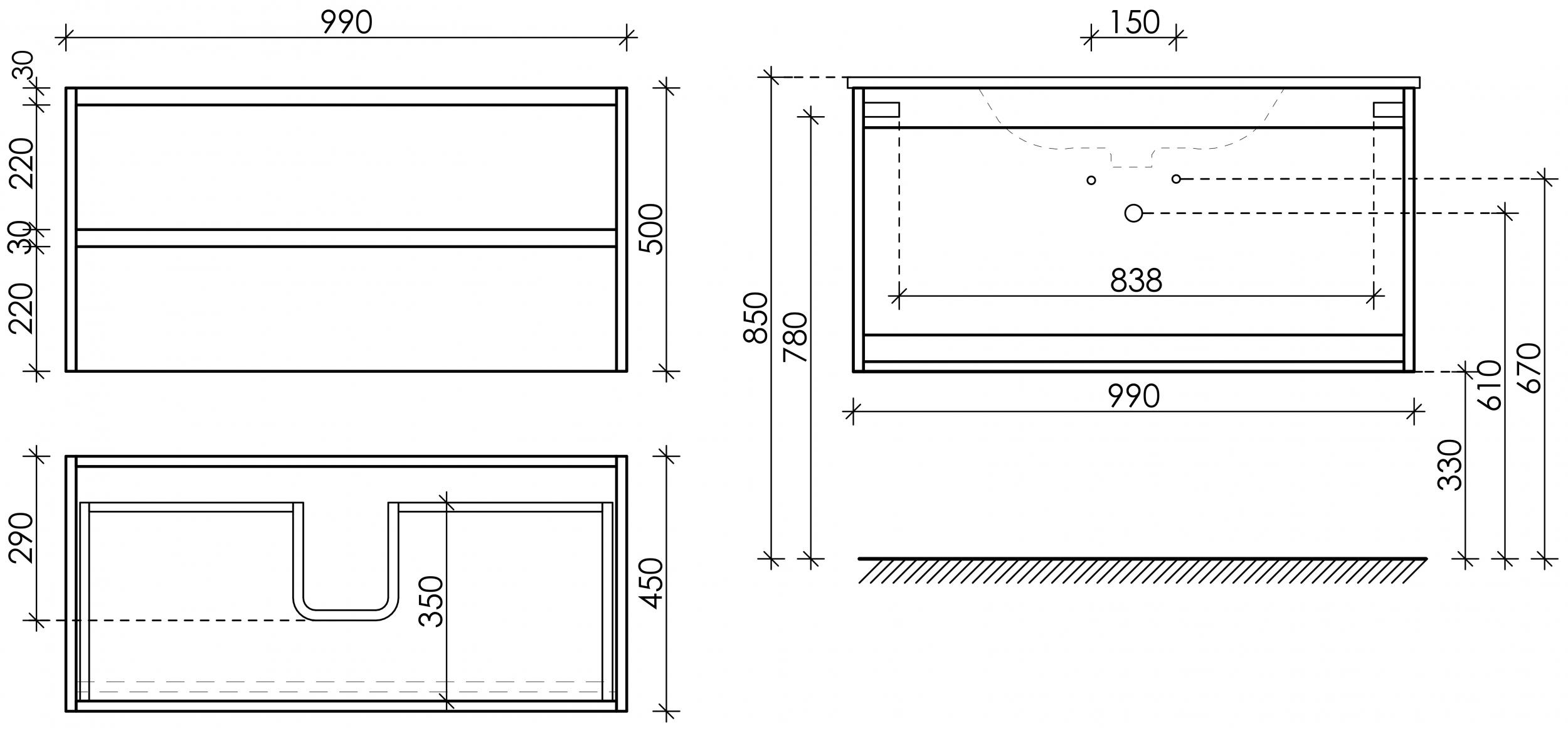 Характеристики тумба с раковиной-столешницей Sancos (LB100W+CN7003)