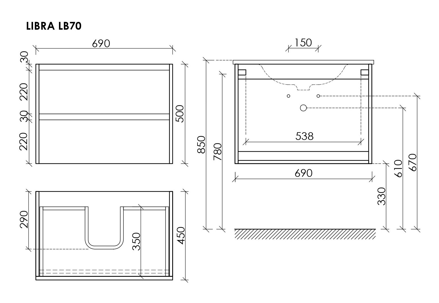 - Тумба подвесная Libra c двумя ящиками оснащенными доводчиками скрытого монтажа с системой плавного закрывания и с ручкой по всей длине ящика. Каркас и фасад тумбы выполнен из МДФ в цвете «белый глянец».