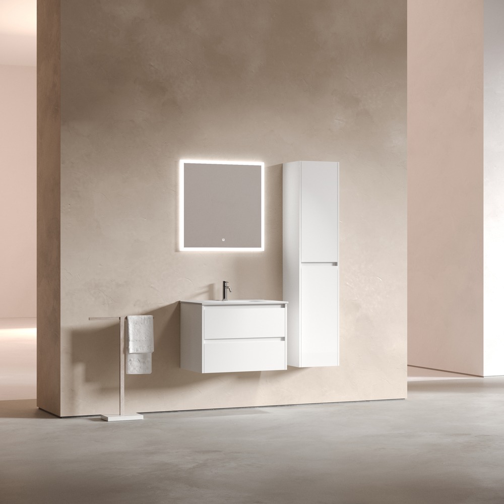 Тумба подвесная Sancos Libra 70 см LB70W c доводчиком и раковиной-столешницей Element CN7007, цвет белый глянец.
