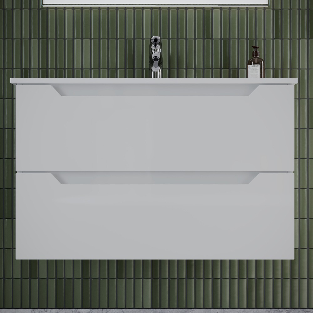 Тумба подвесная Sancos Norma 2.0 80 см NR2.080W c доводчиком и раковиной-столешницей Element CN7005, цвет белый глянец.