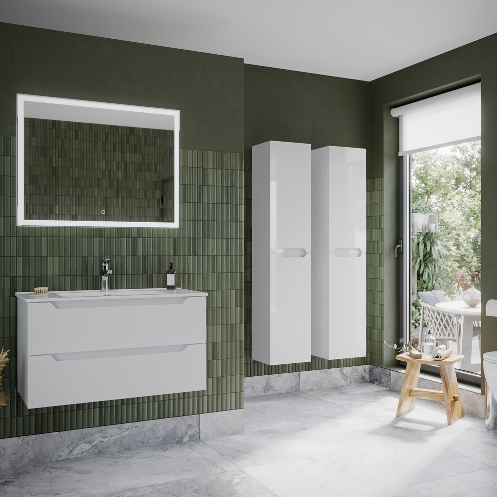 Тумба подвесная Sancos Norma 2.0 90 см NR2.090W c доводчиком и раковиной-столешницей Element CN7002, цвет белый глянец.