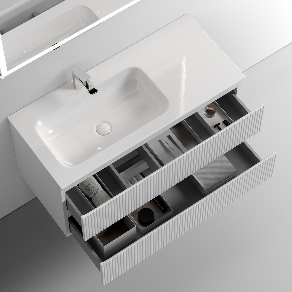 Тумба подвесная Sancos Snob T 100 см SNT100LW с доводчиком и раковиной-столешницей Grace CN7014, цвет Bianco.