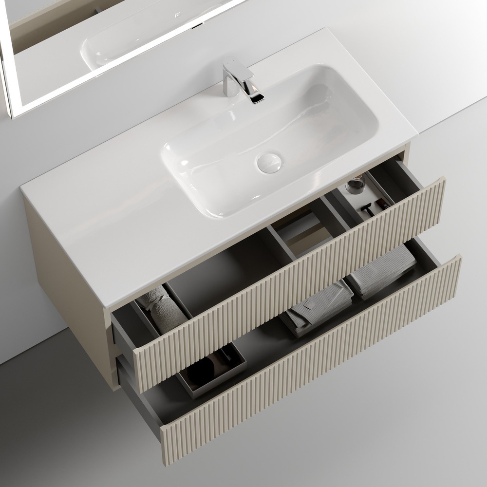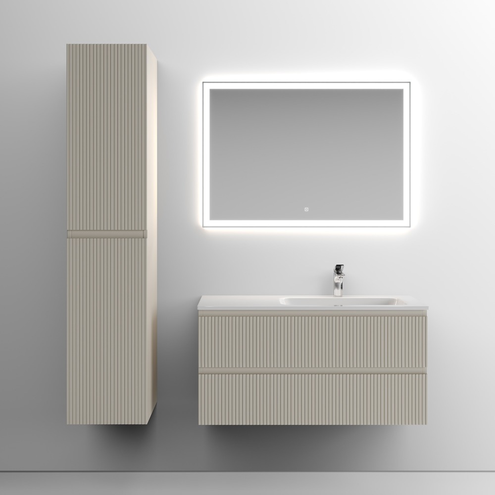 Тумба подвесная Sancos Snob T 100 см SNT100RCE с доводчиком и раковиной-столешницей Grace CN7015, цвет Beige Soft.