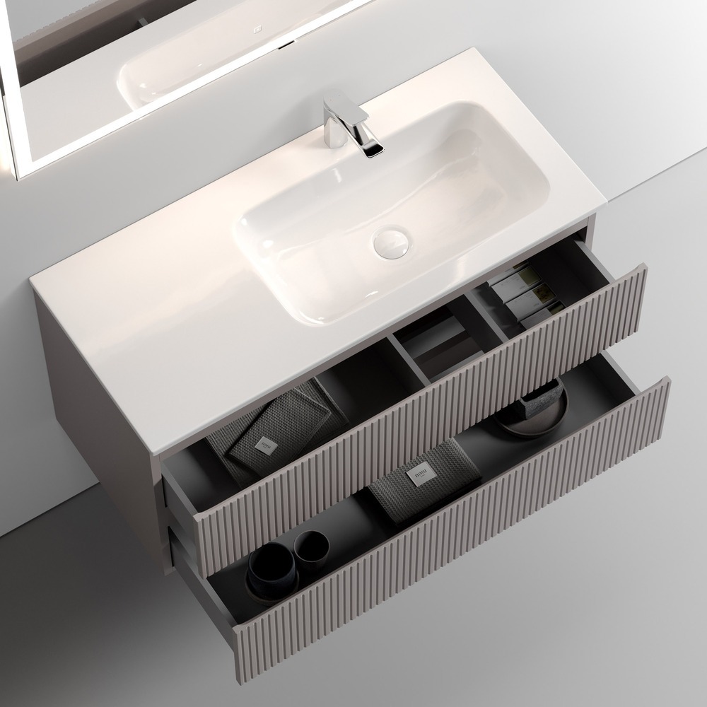 Тумба подвесная Sancos Snob T 100 см SNT100RSM с доводчиком и раковиной-столешницей Grace CN7015, цвет Doha Soft.