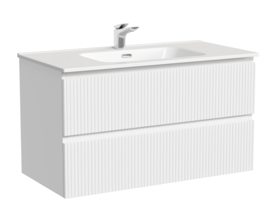 Тумба подвесная Sancos Snob T 90 см SNT90W с доводчиком и раковиной-столешницей Element CN7002, цвет Bianco.